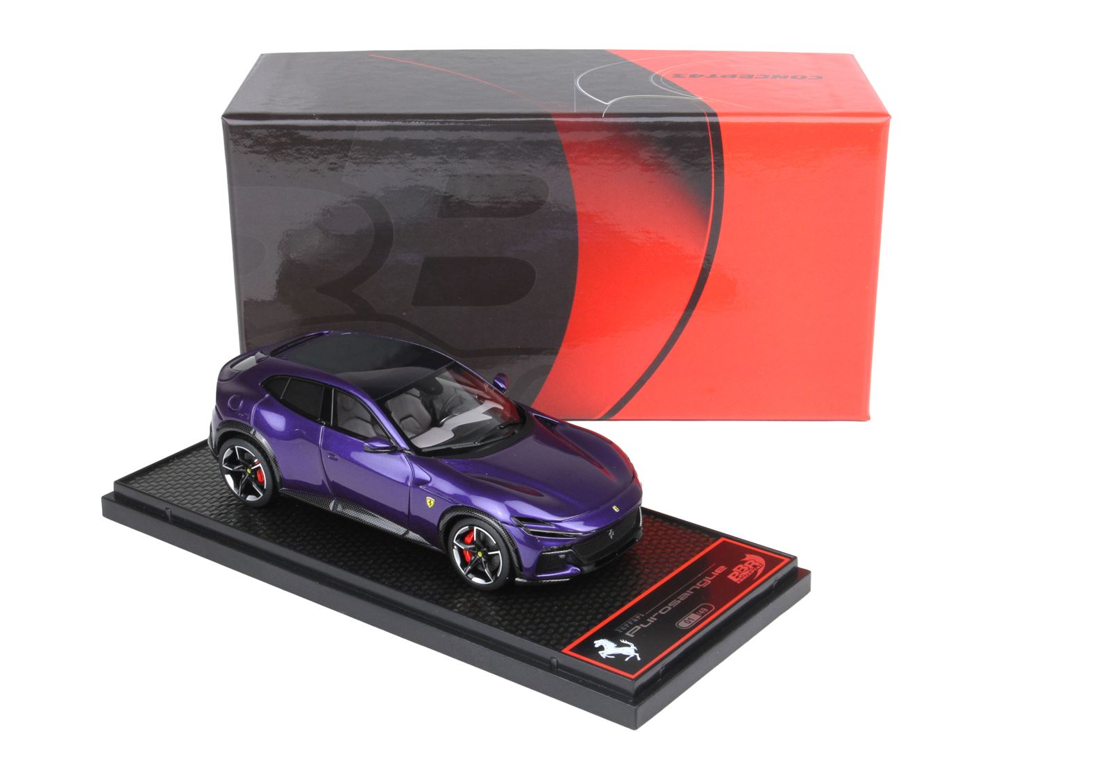 Concept43, la qualità e l'innovazione BBR alla sua massima espressione. Modelli interamente studiati nei laboratori italiani ma assemblati in Cina. Le parti aerodinamiche sono realizzate con utilizzo di particolari in acciaio che permettendo la riduzione perfetta in scala 1/43 con spessori mai visti. Verniciatura e assemblaggio garantito da un BRAND che da più di 25 anni è sinonimo di qualità e perfezione.