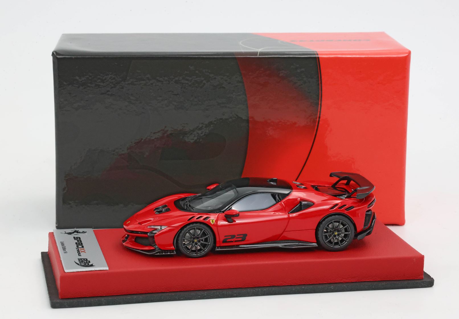 Edizione prodotta da BBR in esclusiva composta da basetta in vera pelle color rosso e targhetta in metallo. Modello prodotto con questo packaging in solo 4 pezzi limitati.