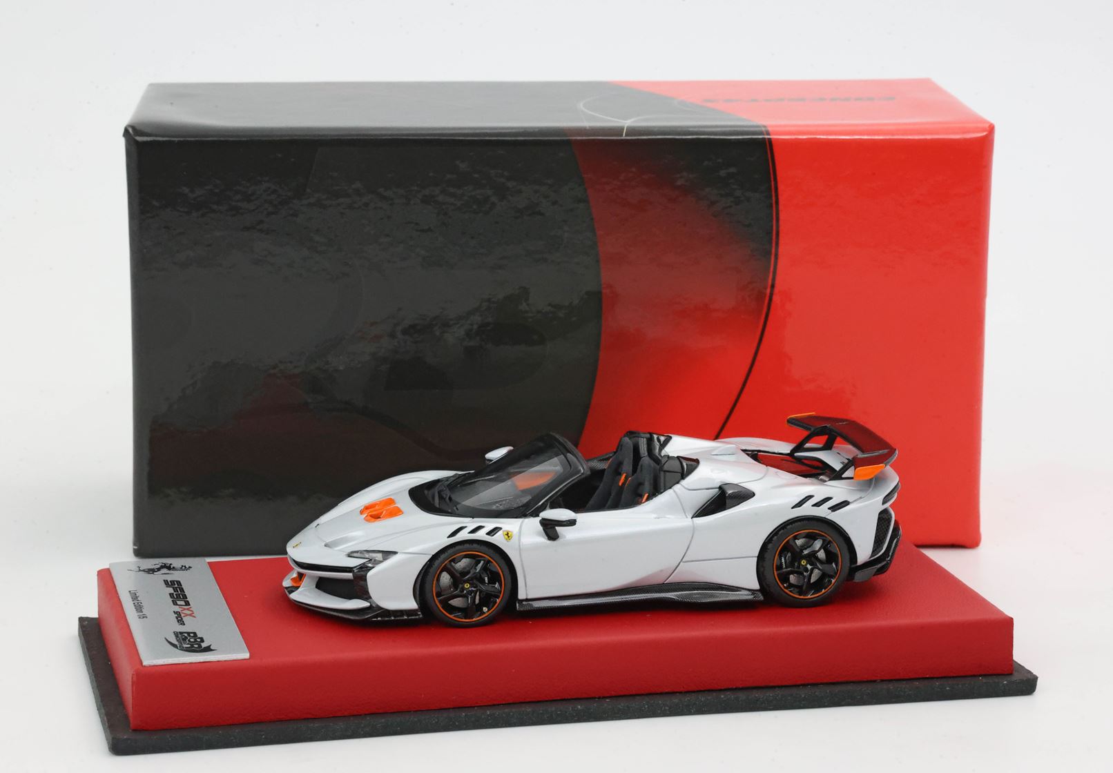 Edizione prodotta da BBR in esclusiva per RaceLine Models composta da basetta in vera pelle color rosso e targhetta in metallo. Modello prodotto con questo packaging in solo 5 pezzi limitati.