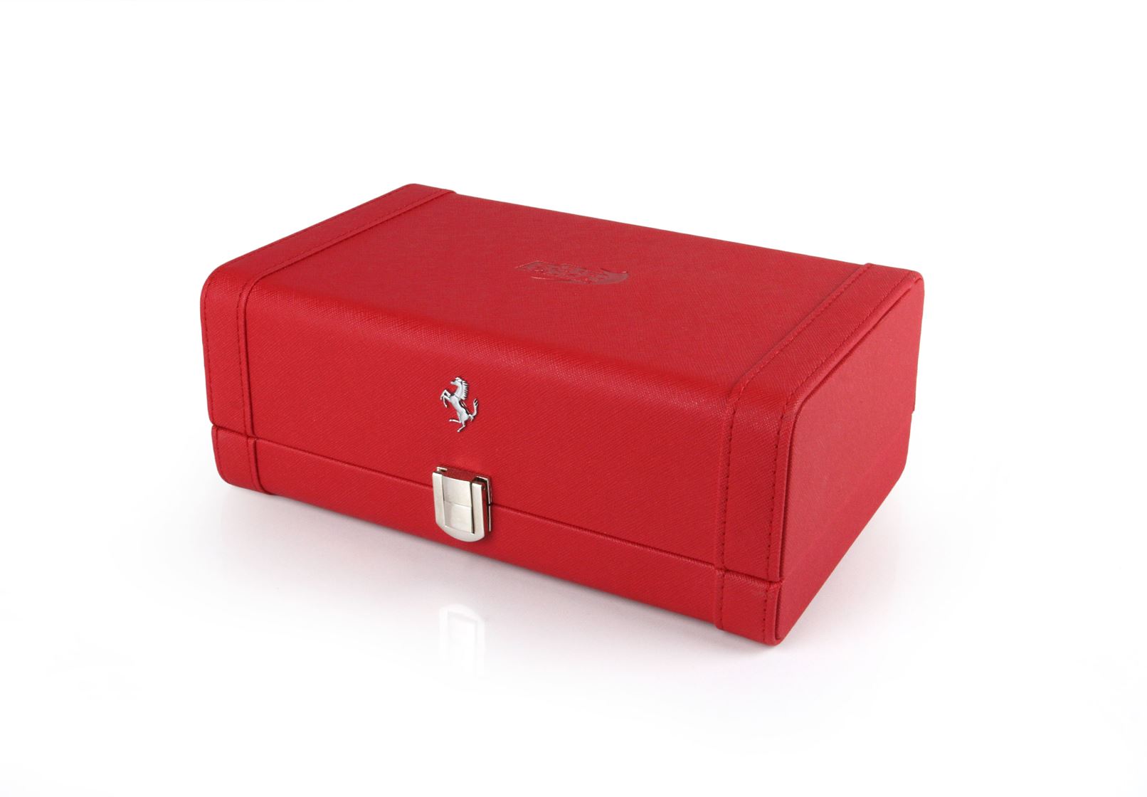 Sulla base sarà riprodotto un passaggio pedonale, come nel circuito stradale di Montecarlo. Vetrinetta con serigrafia guard rail gialli con logo Pirelli in rosso e cofanetto Luxury con il logo del cavallino rampante frontale.