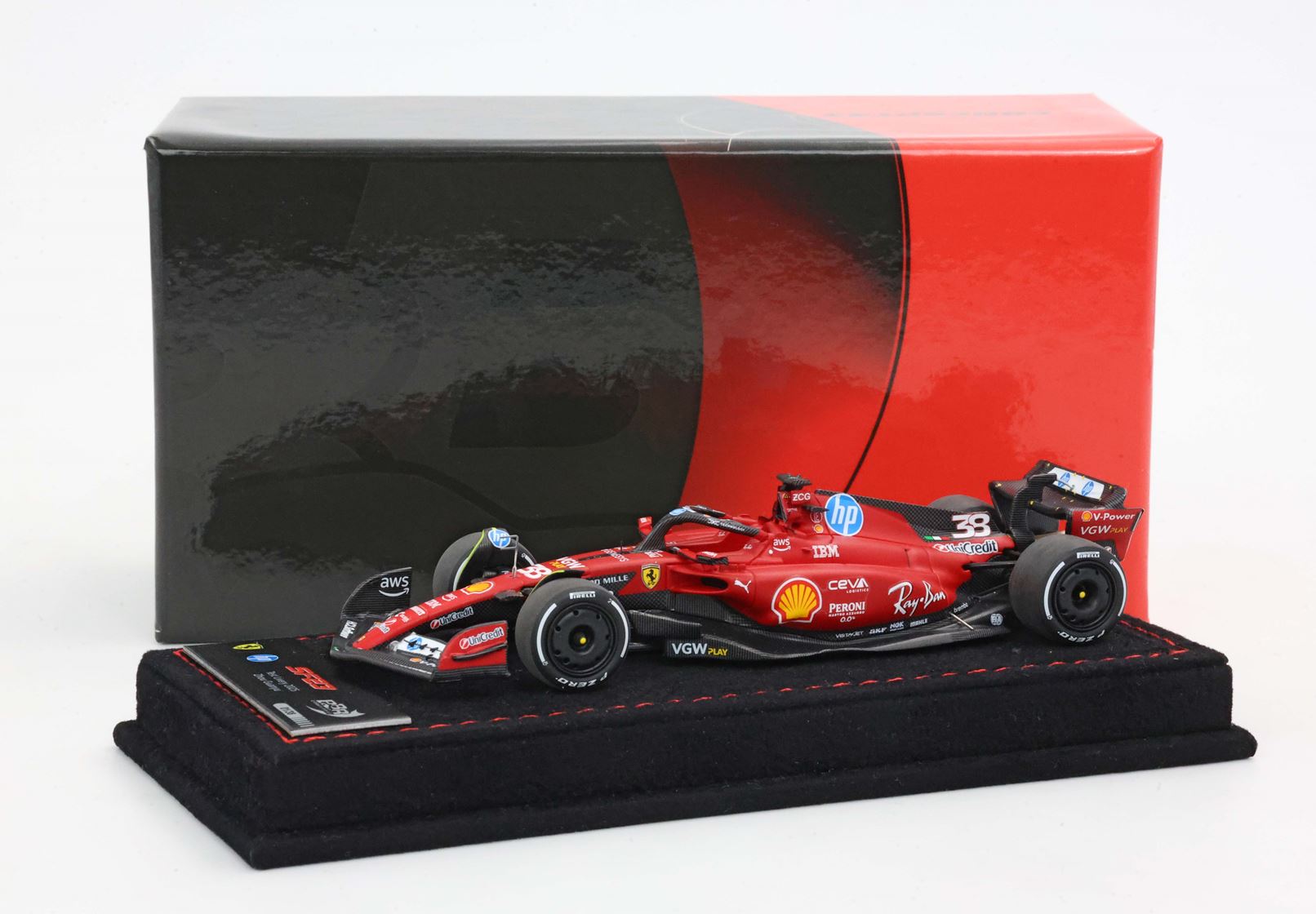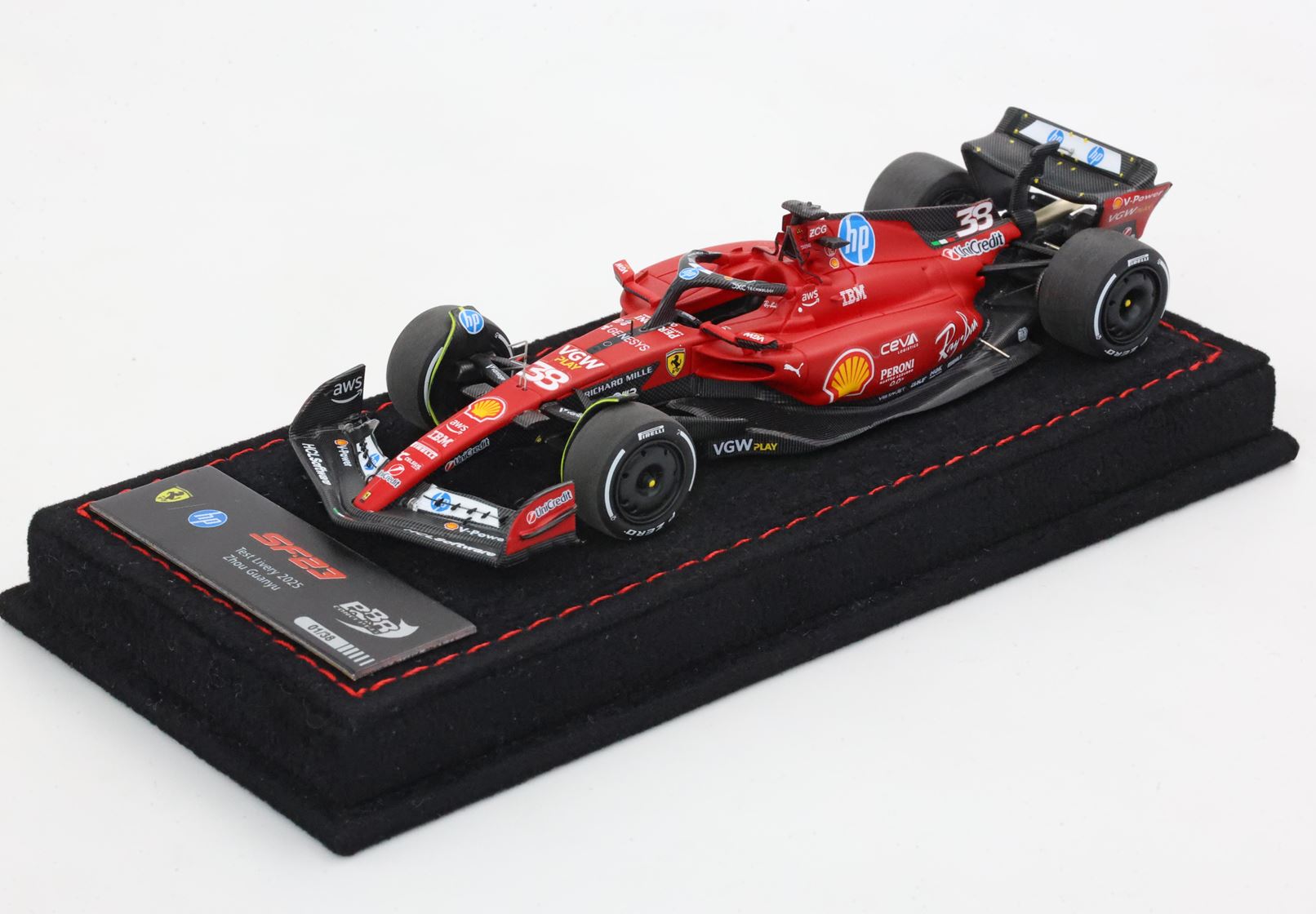 Per celebrare questa giornata, BBR propone un modellino in scala 1/43 della SF-23 aggiornato con il numero 38 scelto da Zhou e tutti gli sponsor della stagione 2025.