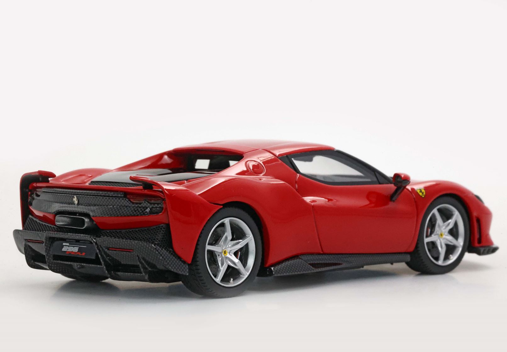 La Ferrari 296 Speciale rappresenta l'evoluzione di 296 GTB. Presentata nell'aprile del 2025 - in contemporanea con la versione A, cioè Aperta, dotata di tetto rigido retrattile - questa berlinetta ibrida plug-in propone una riduzione di peso significativa e un incremento della potenza complessiva. Il design è immediatamente riconoscibile rispetto alla versione GTB grazie ad appendici aerodinamiche derivate dalla 296 Challenge, come l'aero damper anteriore, che convoglia l'aria dal fondo al cofano per stabilizzare l'avantreno. Al posteriore spiccano invece le side wings che riducono la resistenza e aumentano il carico verticale con un incremento del 20% rispetto alla 296 GTB. La motorizzazione rimane un V6 biturbo abbinato a un motore elettrico MGU-K, ma la potenza complessiva sale a 880 CV, con un aumento di 50 CV rispetto alla 296 GTB.
