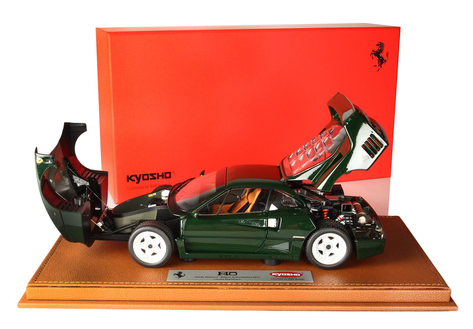 BBR ha deciso di inaugurare una nuova collaborazione con Kyosho, partendo proprio da questo eccezionale modello, una F40 "Born in Saronno". La realizzazione di questo progetto tra BBR e Kyosho è stata in fase di sviluppo da diversi mesi, basandosi su stampi originariamente concepiti molti anni fa ma ora rielaborati e modernizzati. Possiamo affermare con convinzione che questa è la Ferrari F40 in scala Die-Cast più straordinaria presente sul mercato attualmente.