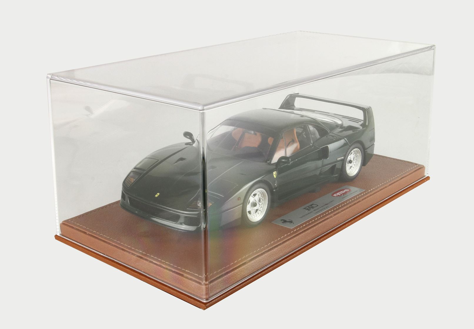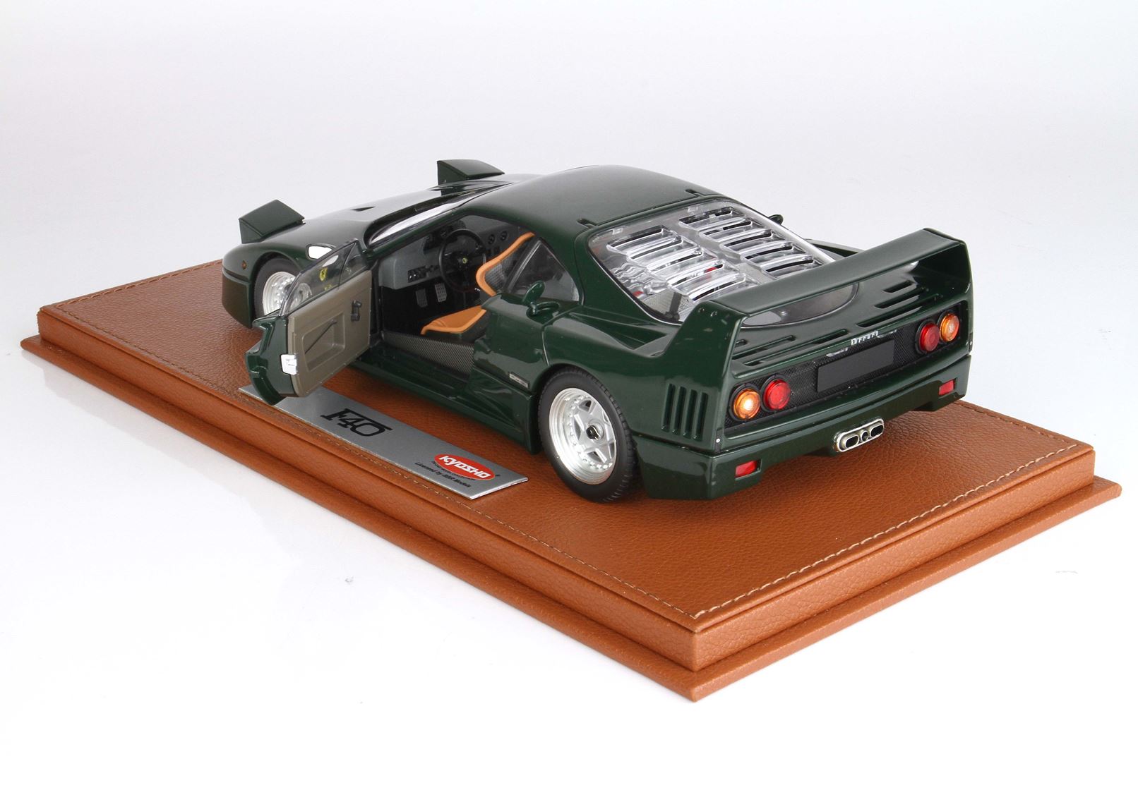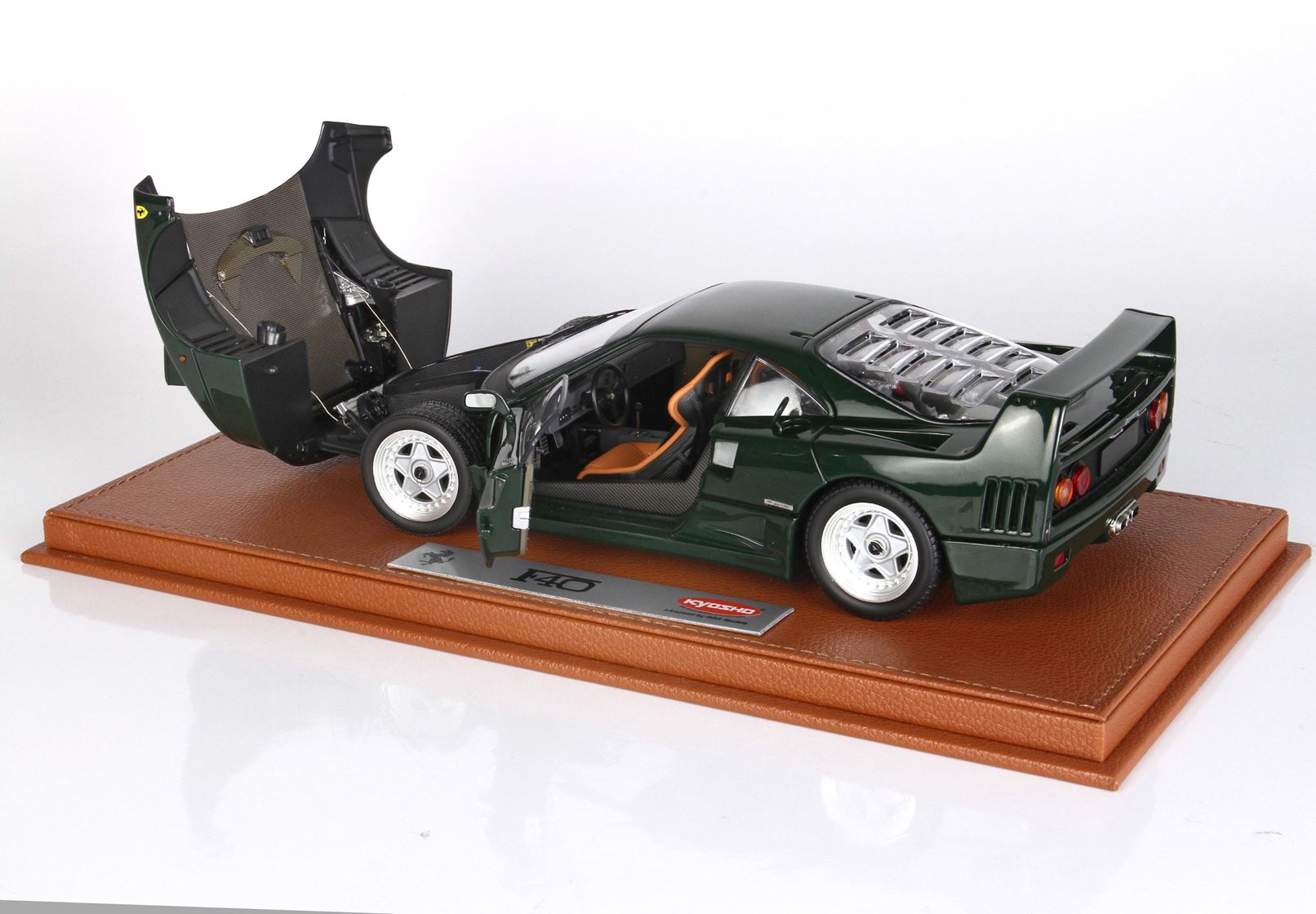Questa è l'unica Ferrari F40 verde Abetone completamente apribile in scala 1/18 presente sul mercato. Si tratta di un autentico oggetto da collezione per gli appassionati della F40. Ogni modello è accuratamente confezionato su una base in ecopelle cucita a mano, all'interno di una vetrina in plexiglass anch'essa assemblata manualmente, accompagnato da un'etichetta in alluminio che ne attesta la limitazione, il tutto all'interno di una scatola personalizzata.