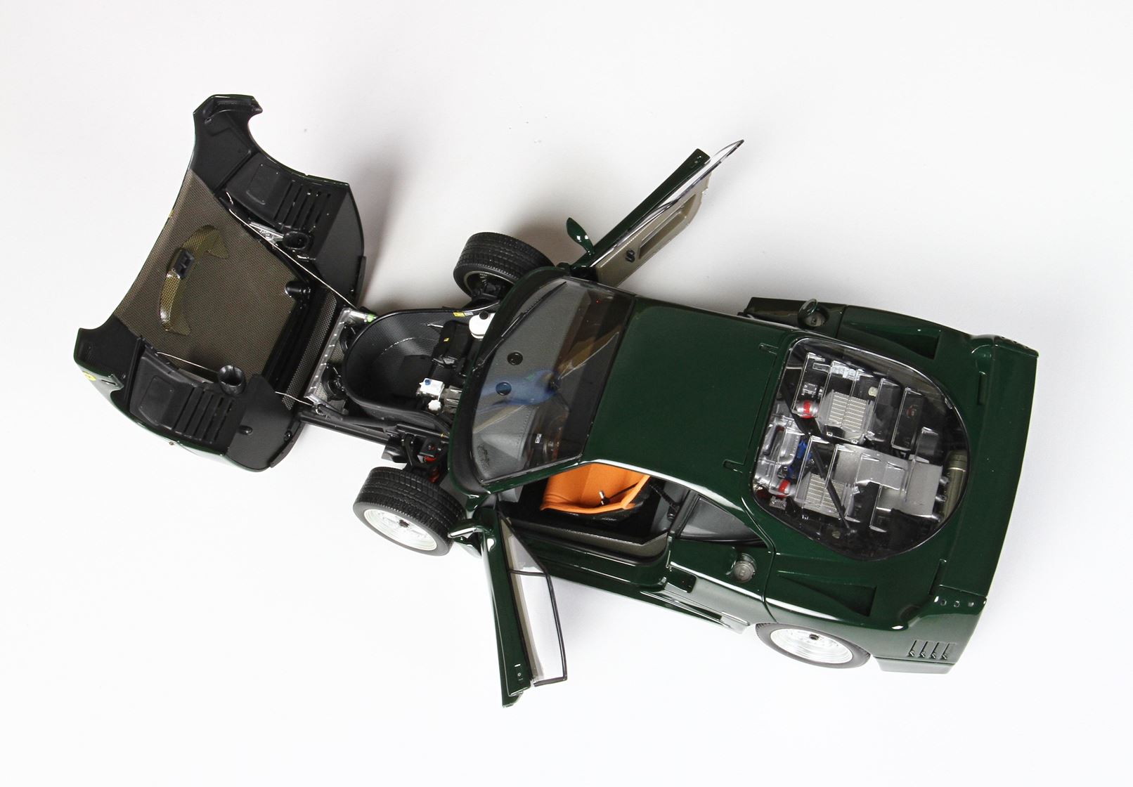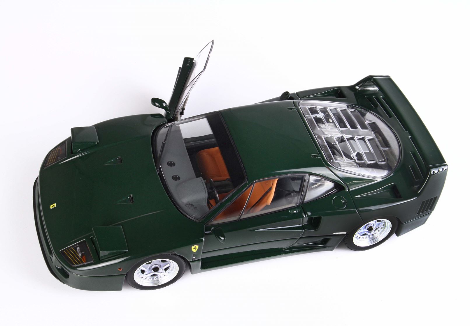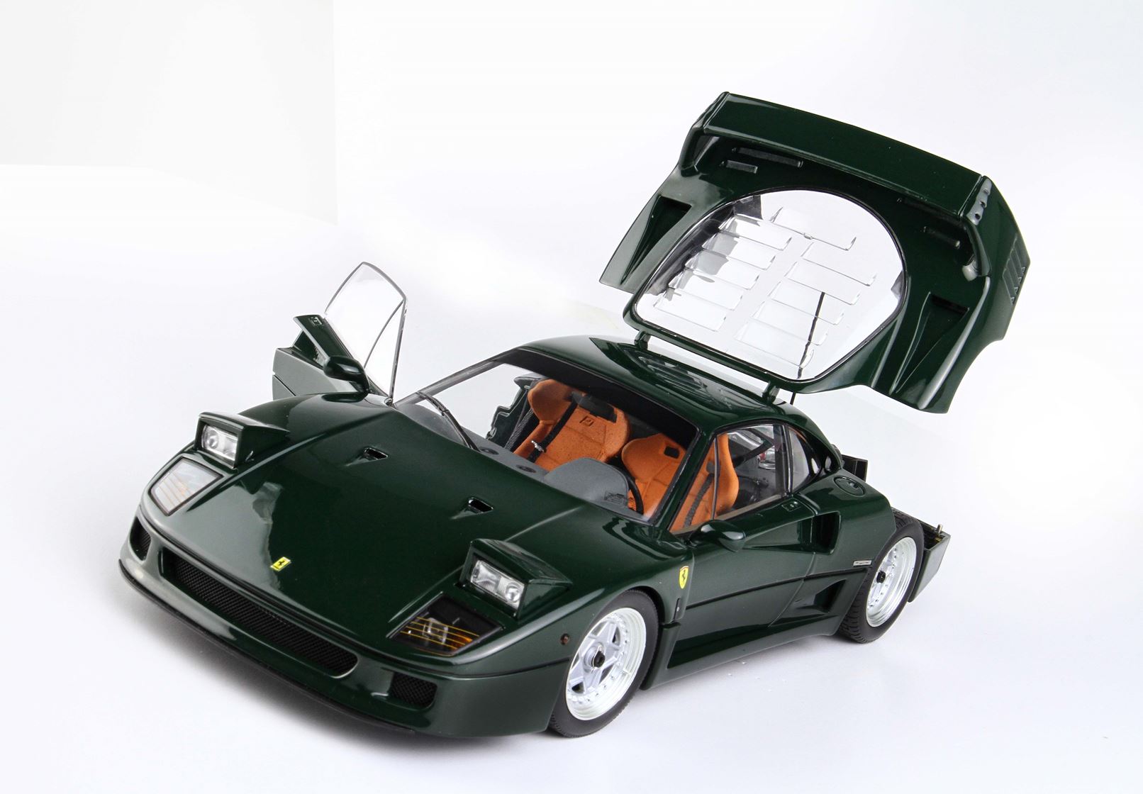 Questa è l'unica Ferrari F40 verde Abetone completamente apribile in scala 1/18 presente sul mercato. Si tratta di un autentico oggetto da collezione per gli appassionati della F40. Ogni modello è accuratamente confezionato su una base in ecopelle cucita a mano, all'interno di una vetrina in plexiglass anch'essa assemblata manualmente, accompagnato da un'etichetta in alluminio che ne attesta la limitazione, il tutto all'interno di una scatola personalizzata.