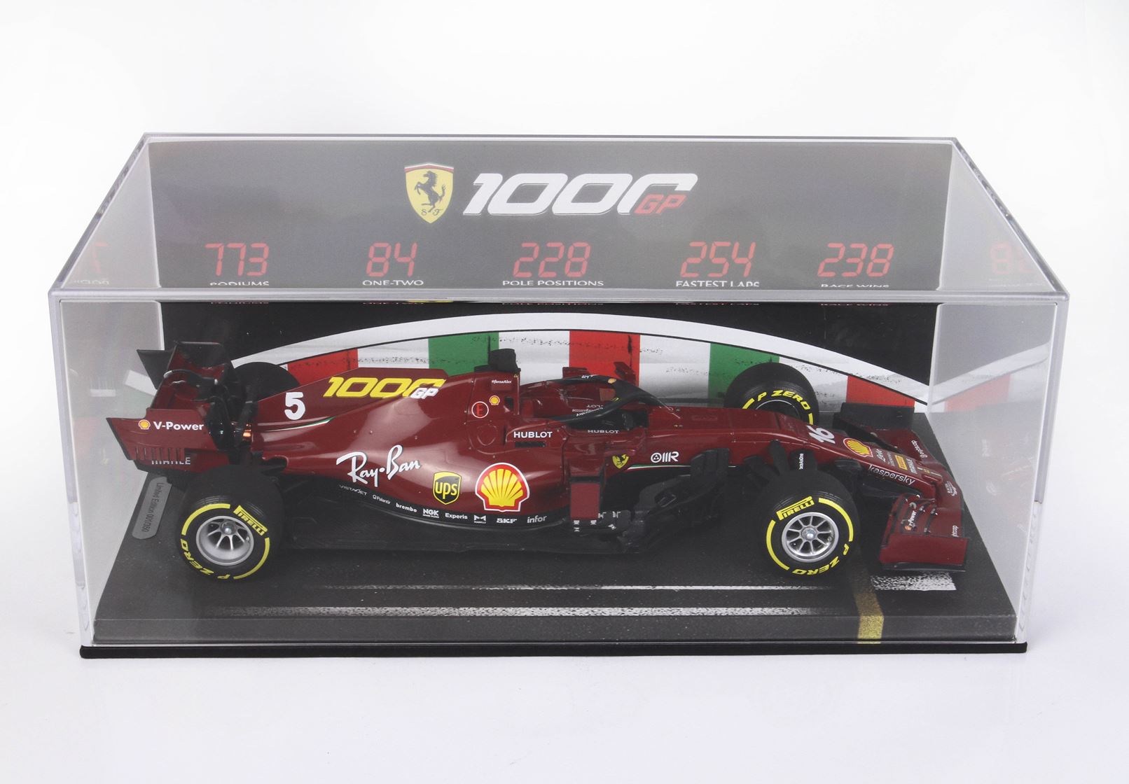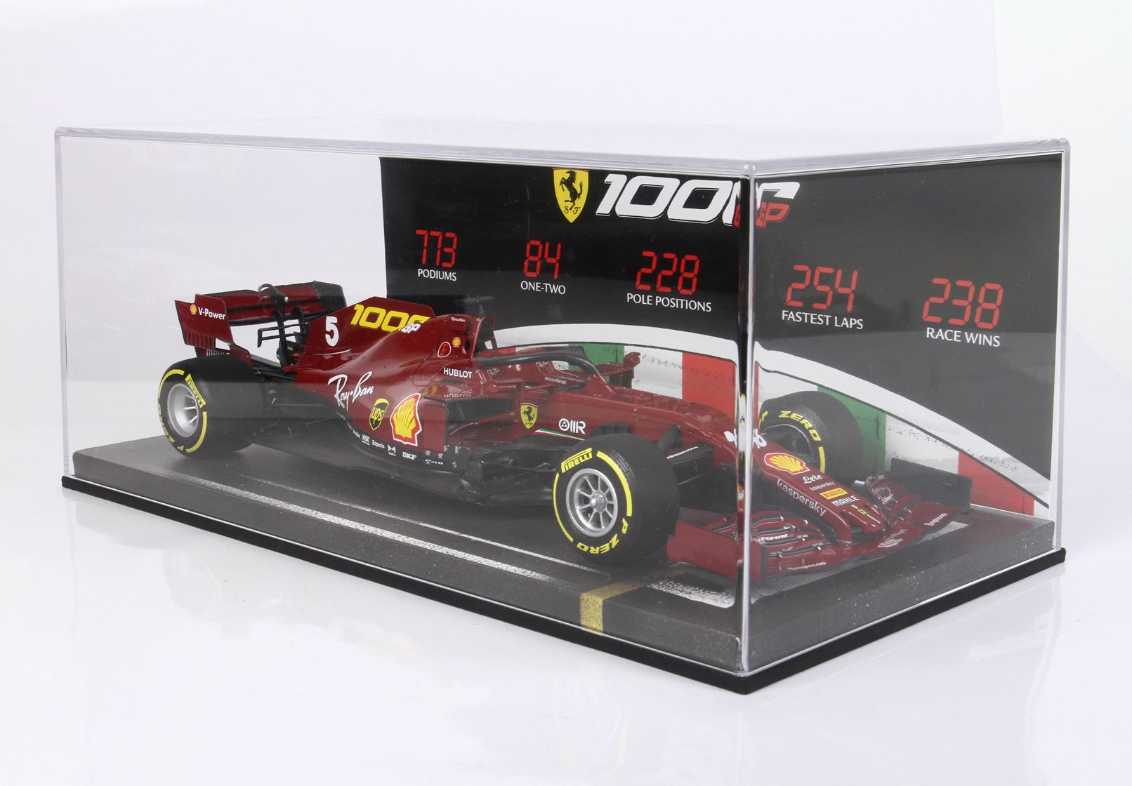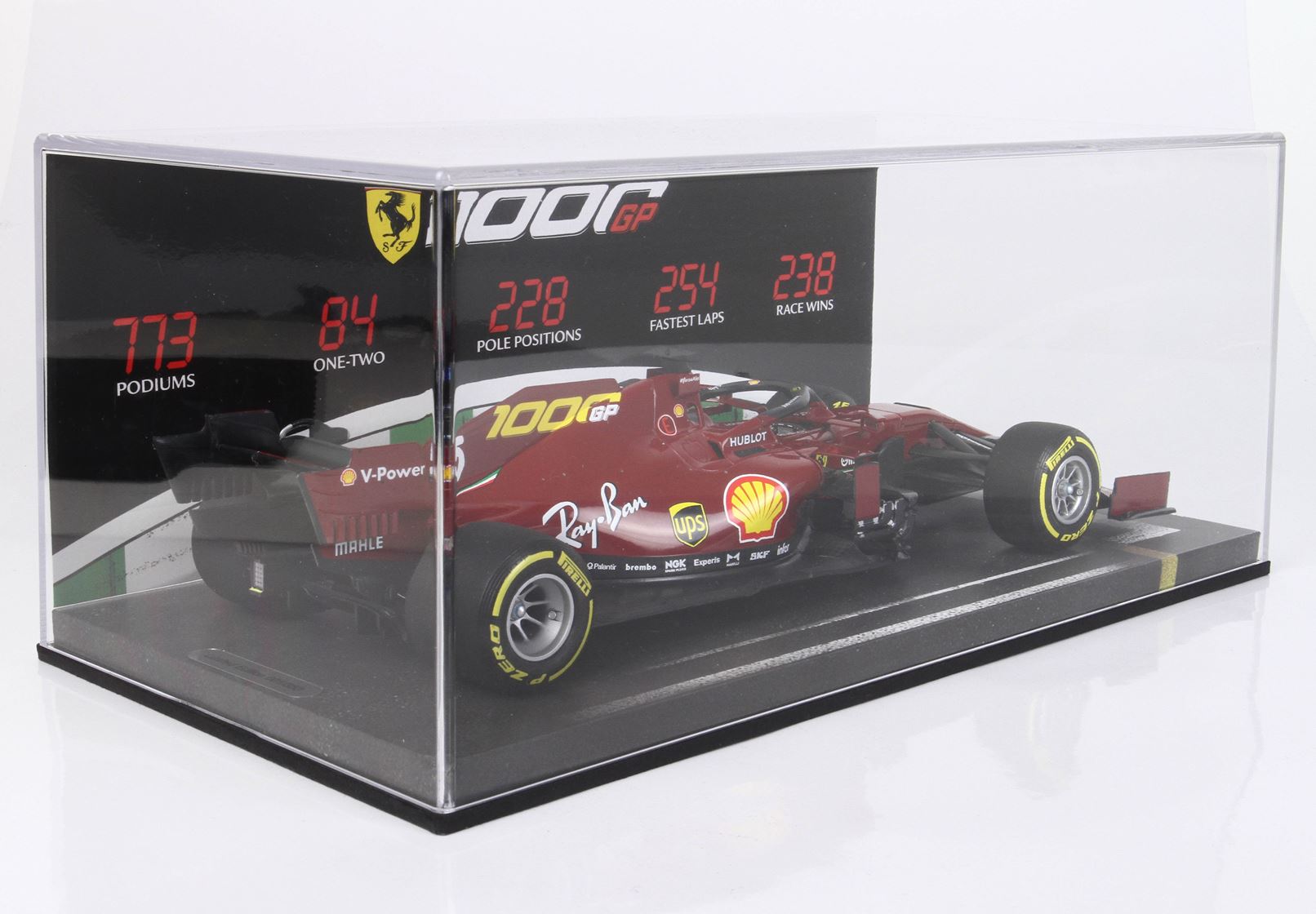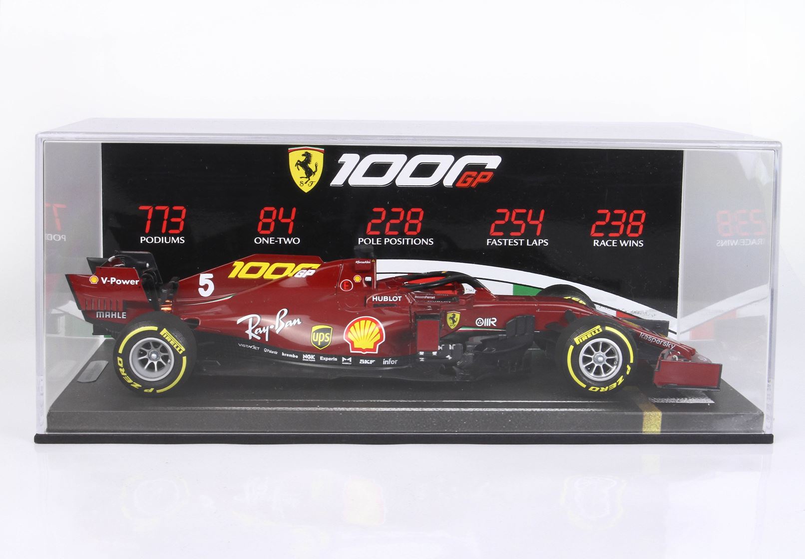 773: Sono i podi ottenuti in F1. Il primo fu conquistato da Alberto Ascari nel Gran Premio di Monaco 1950 quando giunse secondo, l’ultimo è stato ottenuto da Charles Leclerc nel Gran Premio di Gran Bretagna 2020, terzo.