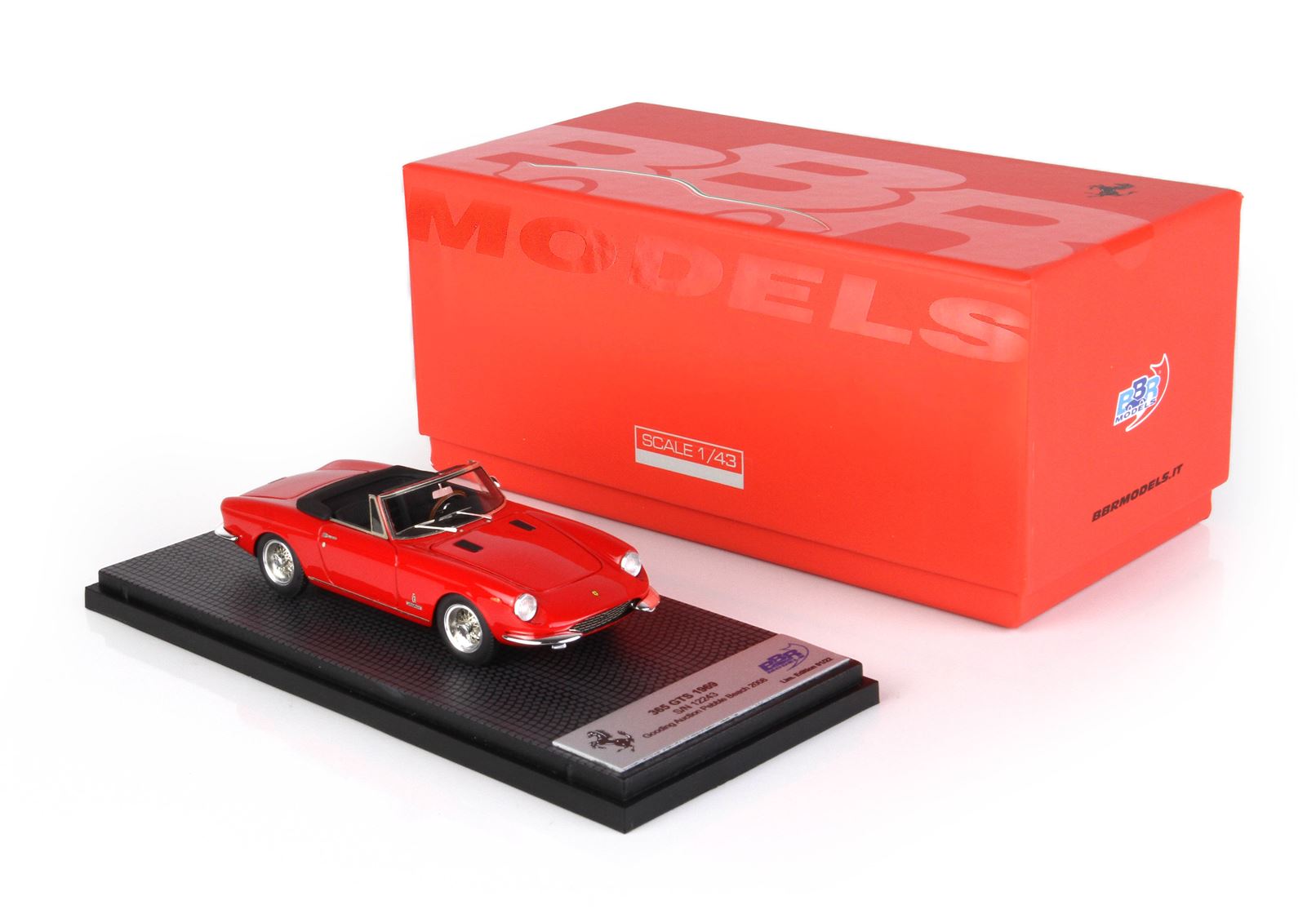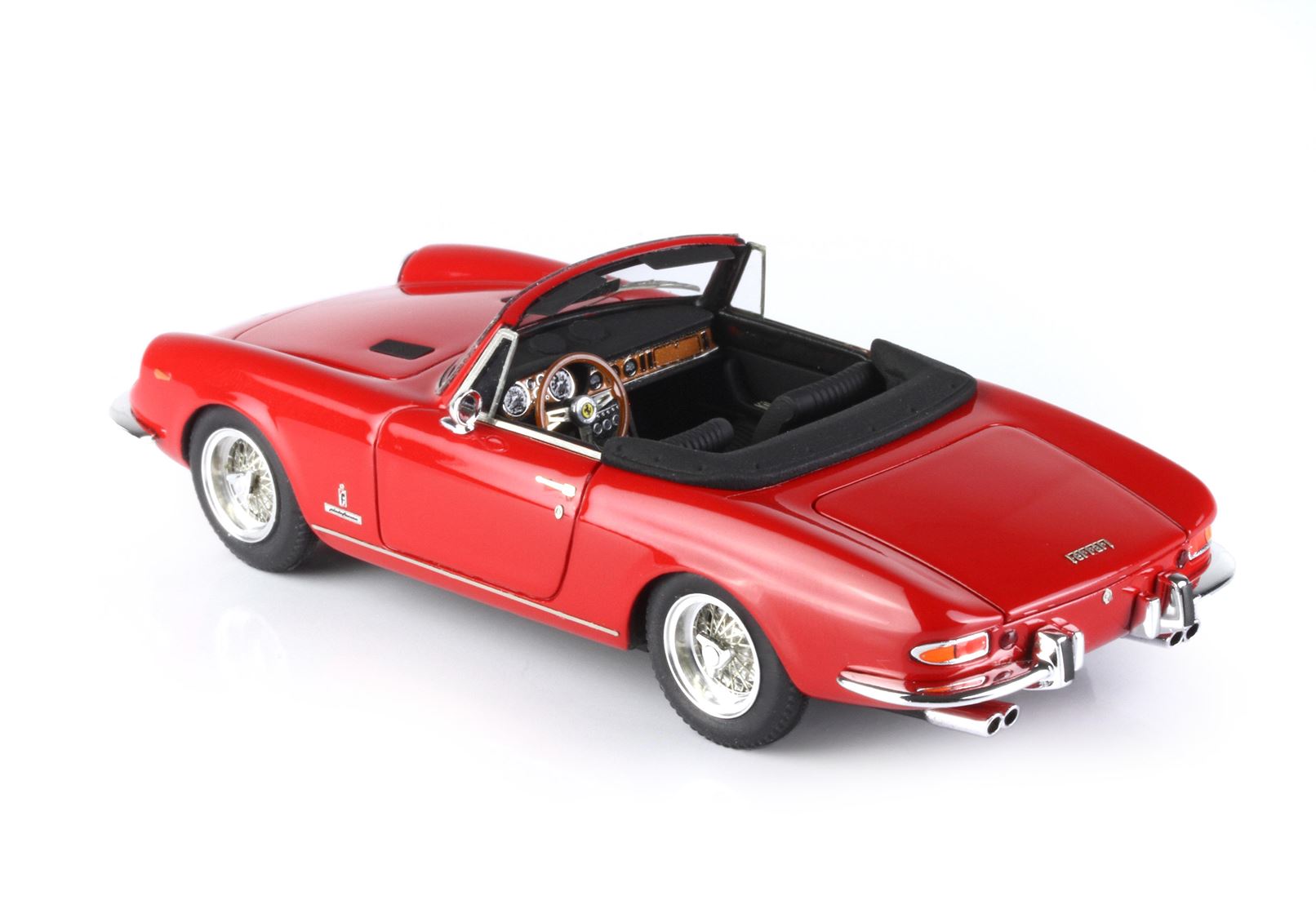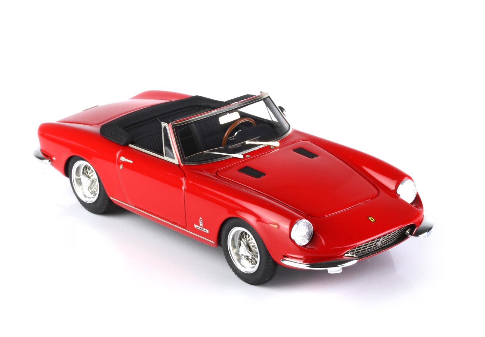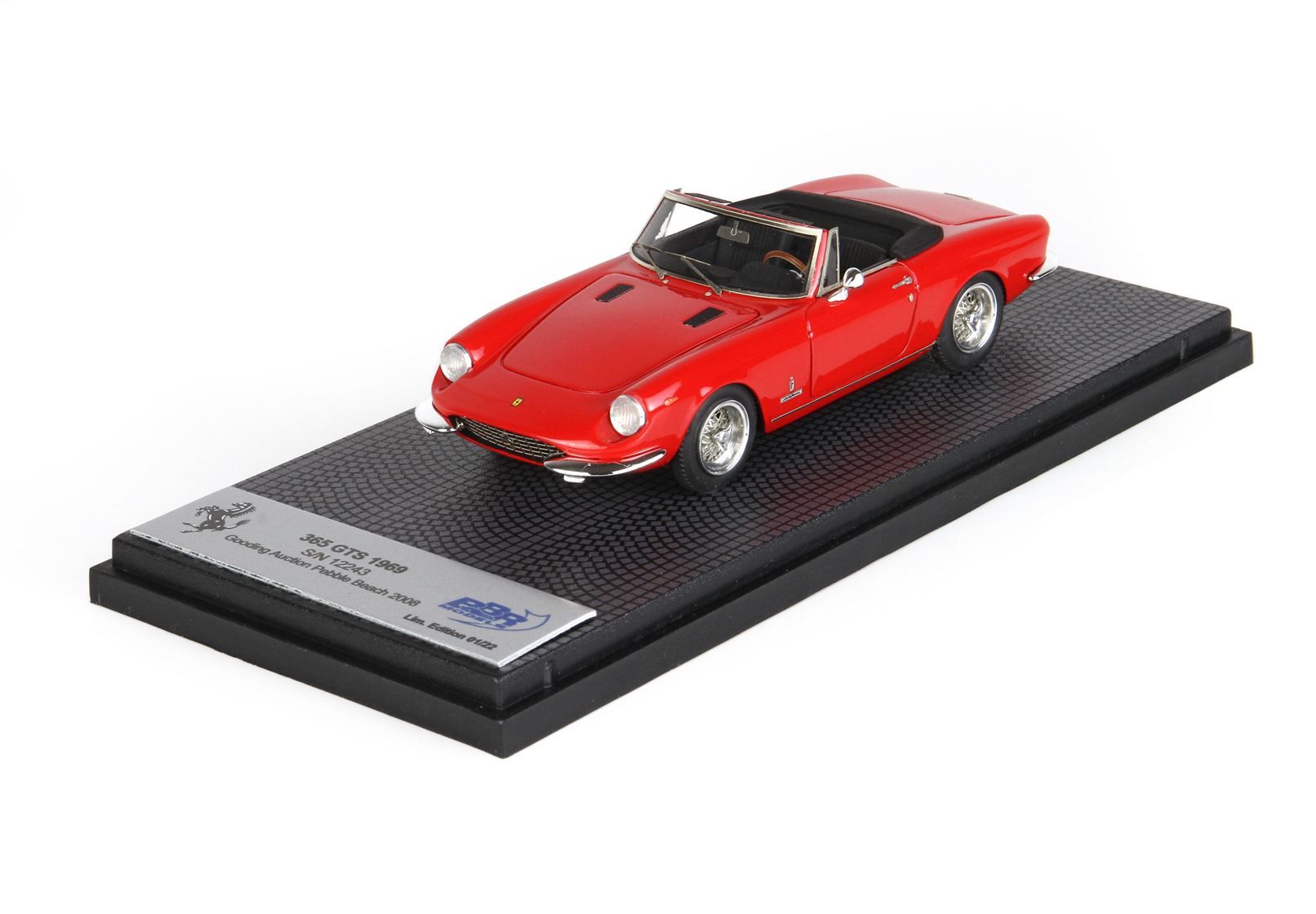 Prodotta dal febbraio all’ottobre 1969, la 365 GTS era dotata della stessa raffinata meccanica che troviamo sulla 365 GT 2+2 e sulla 365 GTC. Alimentato con tre carburatori Weber, il V12 a 60° offriva una notevole elasticità di marcia abbinata ad una gran riserva di potenza. Il cambio posteriore a cinque velocità rendeva inoltre ottimale la distribuzione dei pesi. A richiesta erano disponibili l’impianto di condizionamento e le ruote a raggi. Di questa spider furono costruiti venti esemplari.