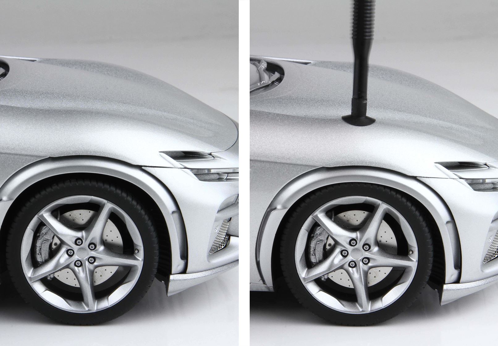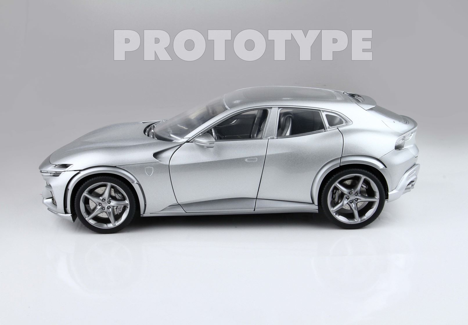 Esclusiva mondiale di Purosangue in scala 1/18 diecast completamente apribile. Rendono unico il modello firmato BBR, una fedele riproduzione dell’aperture di porte e cofani (tramite pistoncini telescopici) ma anche la possibilità di aprire braccioli interni e tappo benzina. Parti in metallo e abs si alternano a fotoincisioni e decals per un risultato di alta qualità. Quattro ruote realmente ammortizzate e sterzanti con due diversi tipi di cerchi: l’interruttore sul fondo permette inoltre di direzionare le ruote posteriori in direzione parallela o opposta. Tutto come nell'auto da strada ma racchiuso in pochi centimetri.