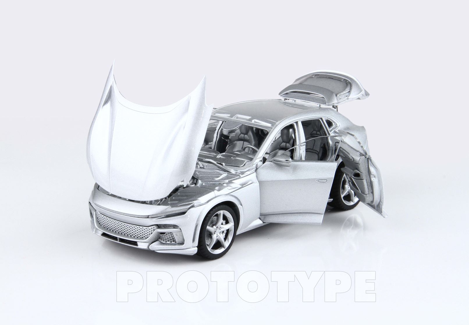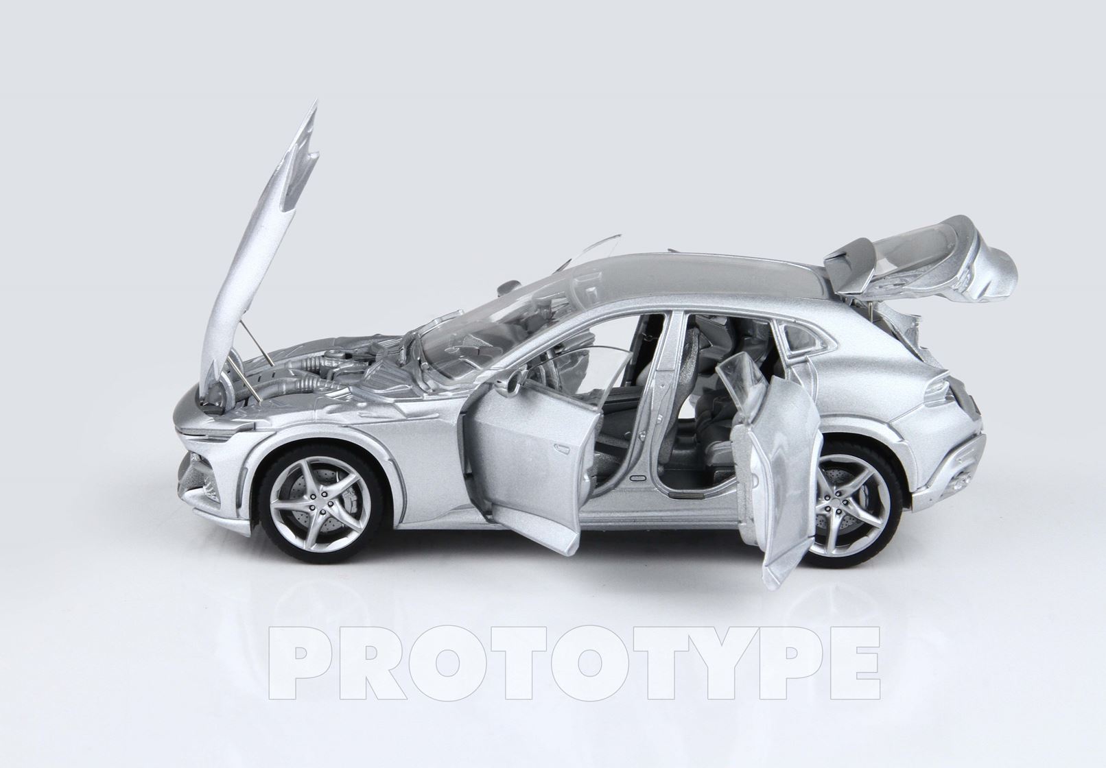Esclusiva mondiale di Purosangue die-cast completamente apribile in scala 1/43. Rende unico il modello firmato BBR, la riproduzione fedele dell’apertura delle porte comprese quelle controvento posteriori che caratterizzano la prima quattro porte nella storia di Ferrari. Anche l’apertura del cofano anteriore consente di ammirare la miniatura del motore prodotto in ogni dettaglio. Aprendo il baule invece, si può vedere da vicino il lusso degli interni. Ben 105 parti in metallo e abs si alternano a fotoincisioni e decals per un risultato di alta qualità.