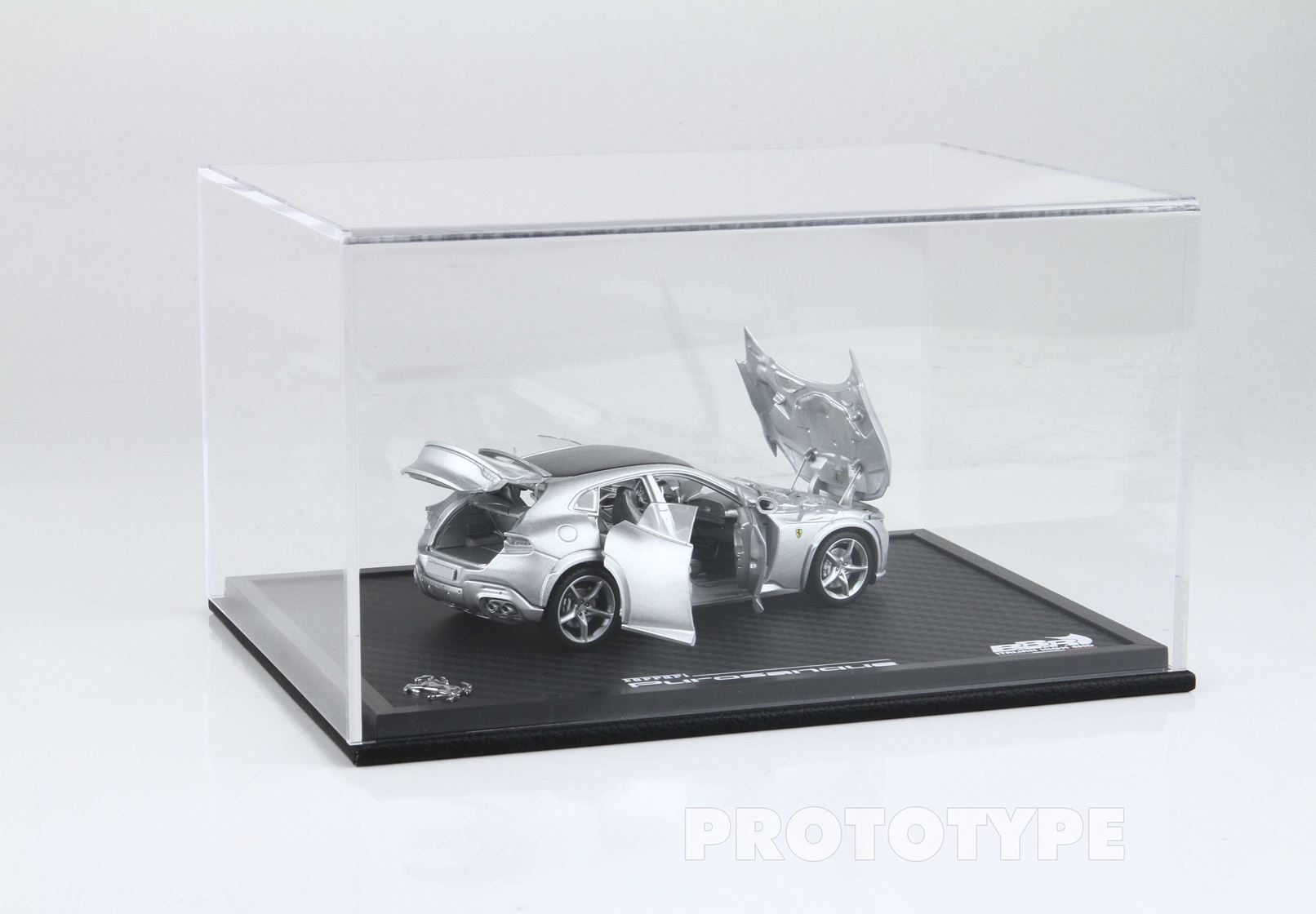 Special pack dotato di vetrina e basetta in vero carbonio con dimensioni maggiorate per l'esposizione del modellino aperto. Cofani e portiere sono realmente funzionati e puoi scegliere se esporre l'auto chiusa o totalmente aperta. Serie limitata 100 pezzi.