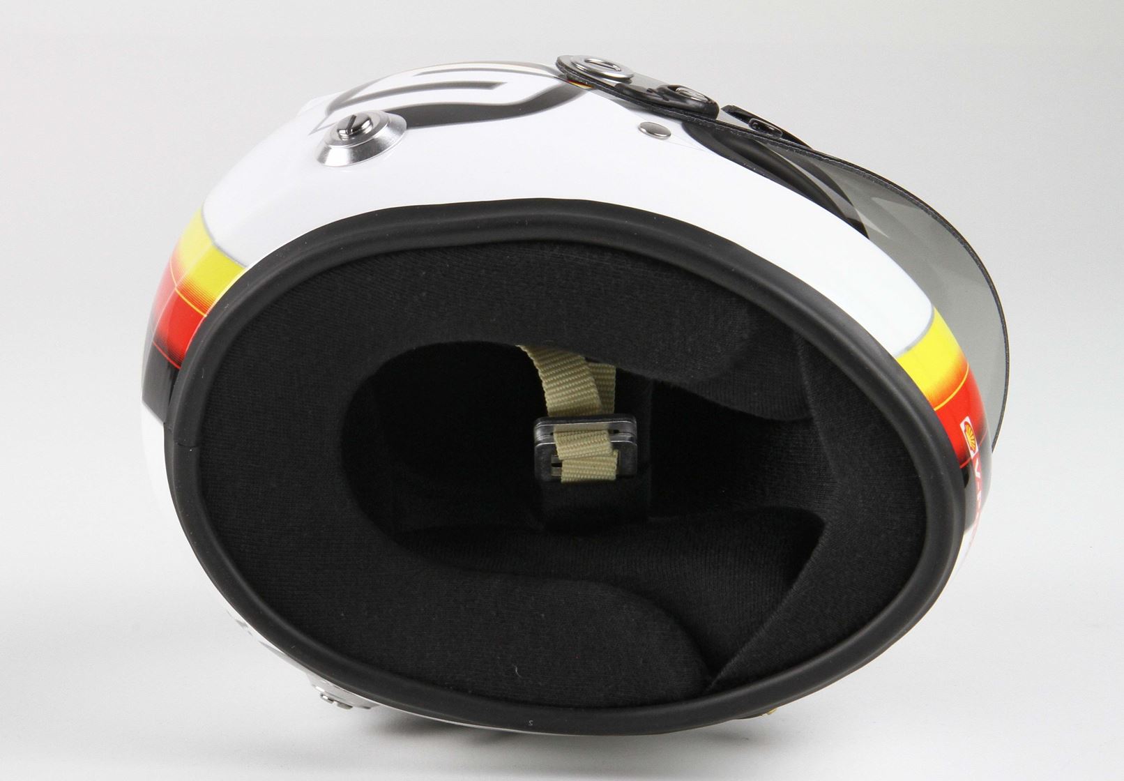 L'Interno del casco, come si vede dalle foto, è realizzato in materiale morbido ed è provvisto di relativo cinturino di chiusura;