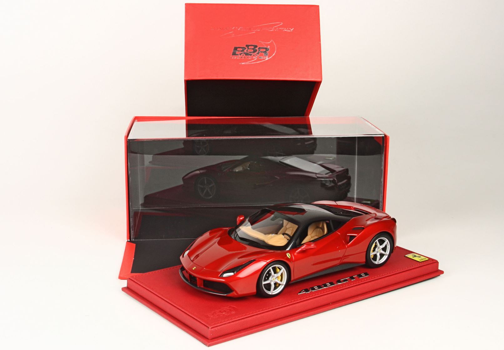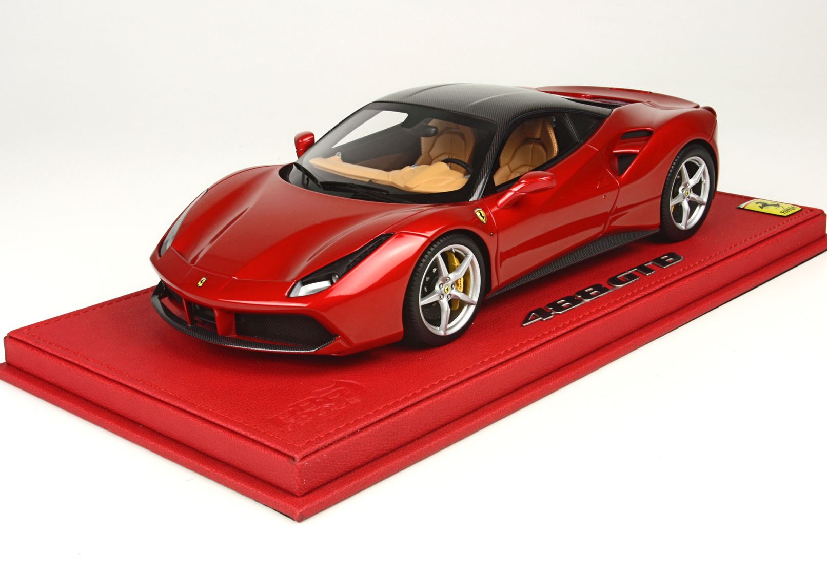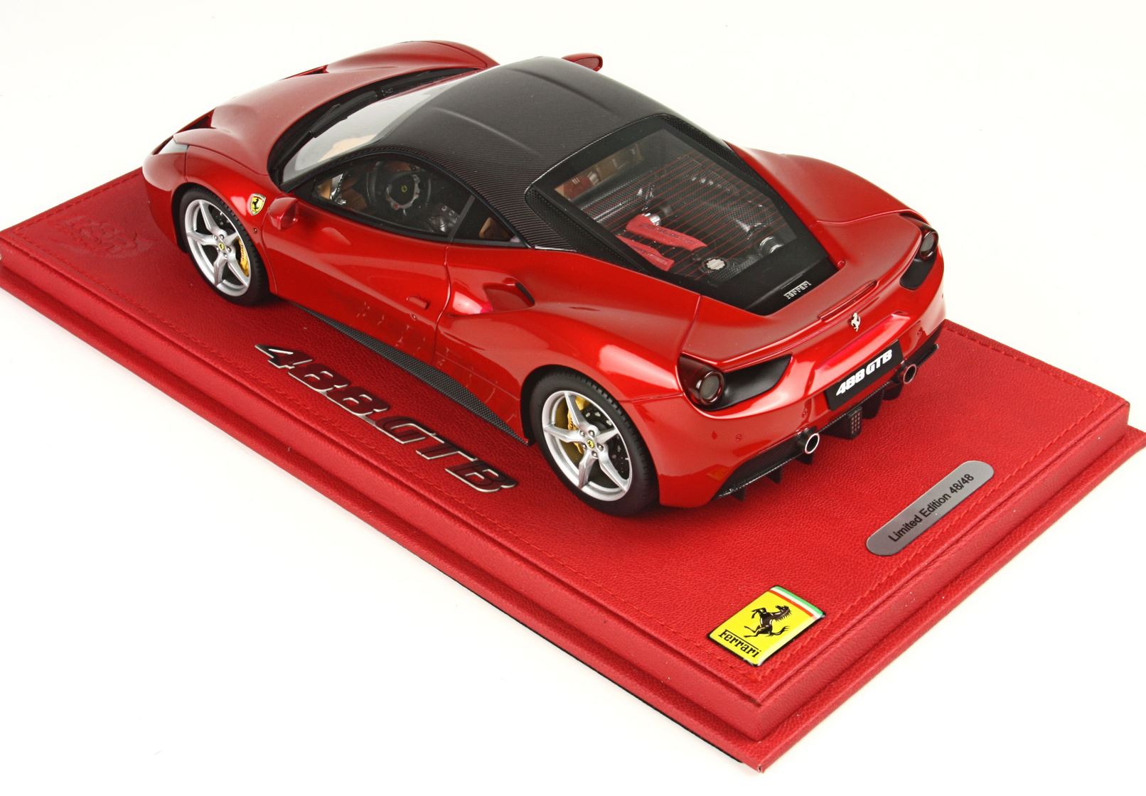 un bellissimo colore per questo modello in scala 1/18, rosso micalizzato chiamato red enzo, colore speciale inchiostro da effetto incredibile alla luce del sole, particolare ed esclusiva la verniciatura delle testate del motore con alluminio metallizzato per una replica fedele in scala. Il modello replica l'optional fibra carbonio offerto da Ferrari. Se guardate le foto è stata replica la fibra di carbonio nella parte anteriore, posteriore, sotto portiera e tutta la zona motore un vero lavoro artigianale.