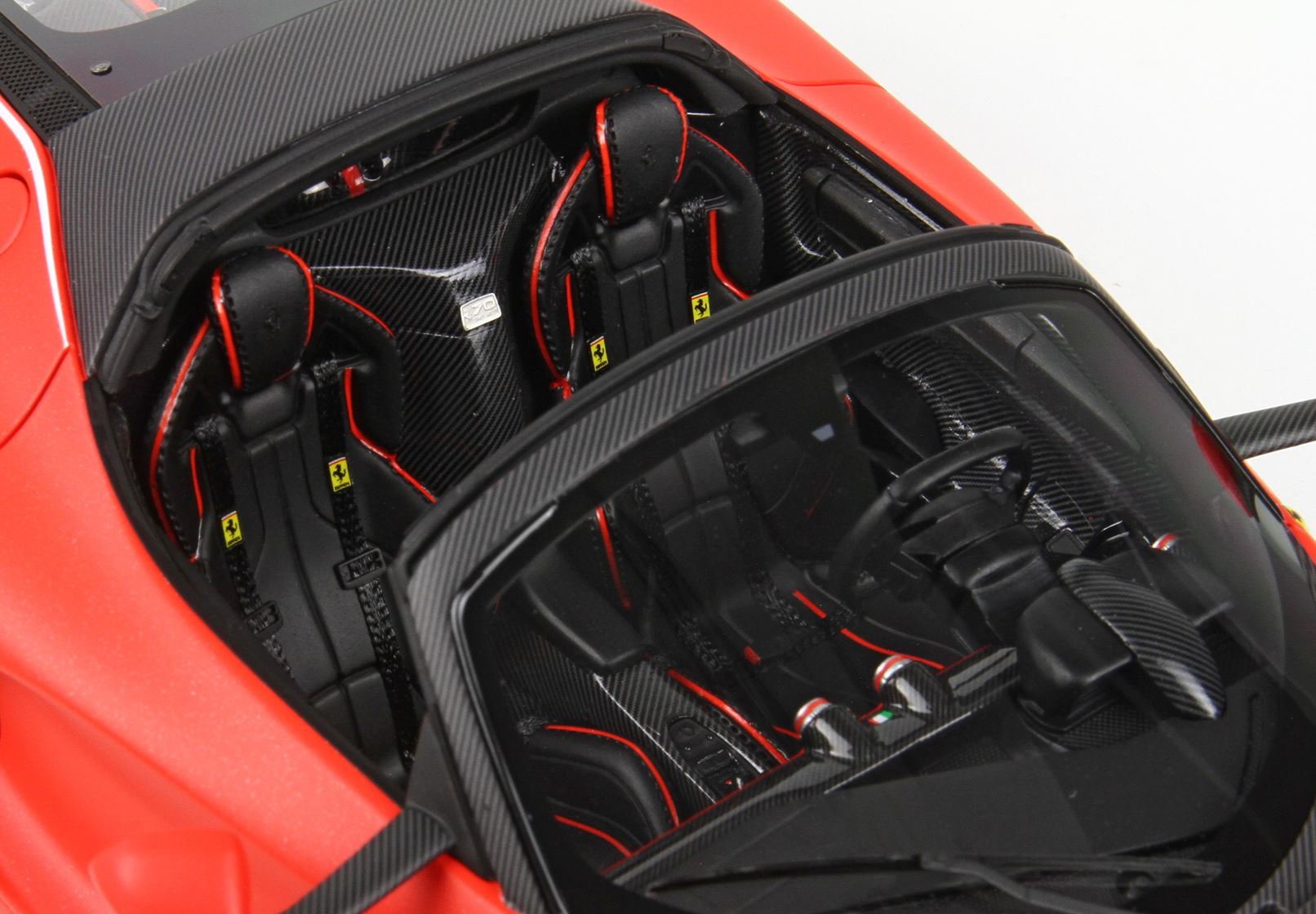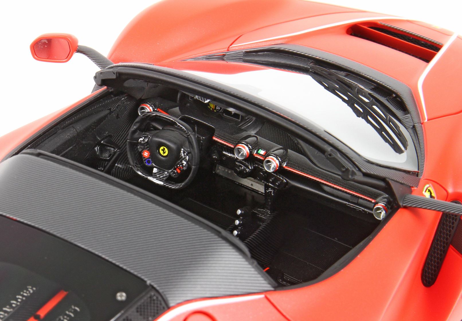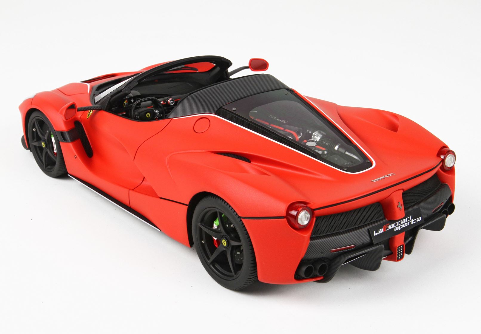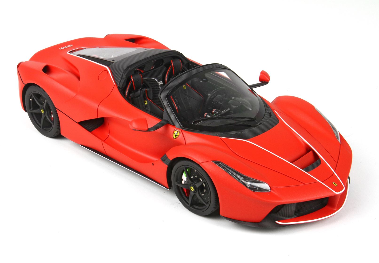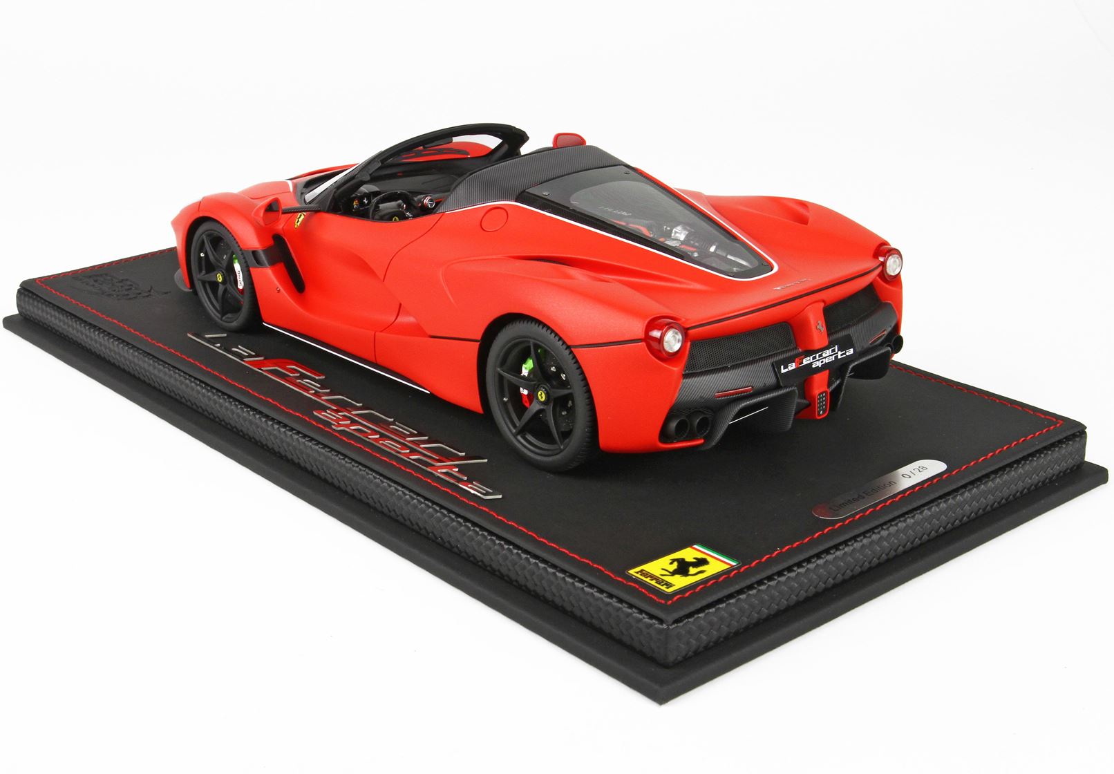 Vi presentiamo questa bellissima versione della Ferrari LaFerrari Aperta, colore della stagione Formula1 2019, colore rosso opaco con scaglie di alluminio.