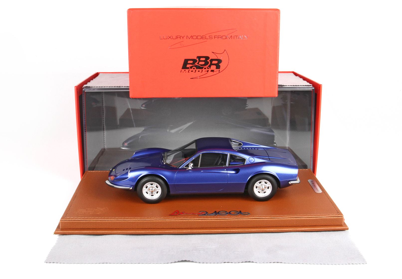 La Dino 246 venne prodotta in diverse versioni il 1969 e il 1973. Venne considerata una sorta di "baby" Ferrari, ma le sue prestazioni e il suo comportamento stradale erano paragonabili a quelli di modelli con motori più frazionati ed il pubblico ne decretò il successo .Vi presentiamo la prima serie denominata TIPO 607L, con le ruote a gallettoni e interni particolari.
