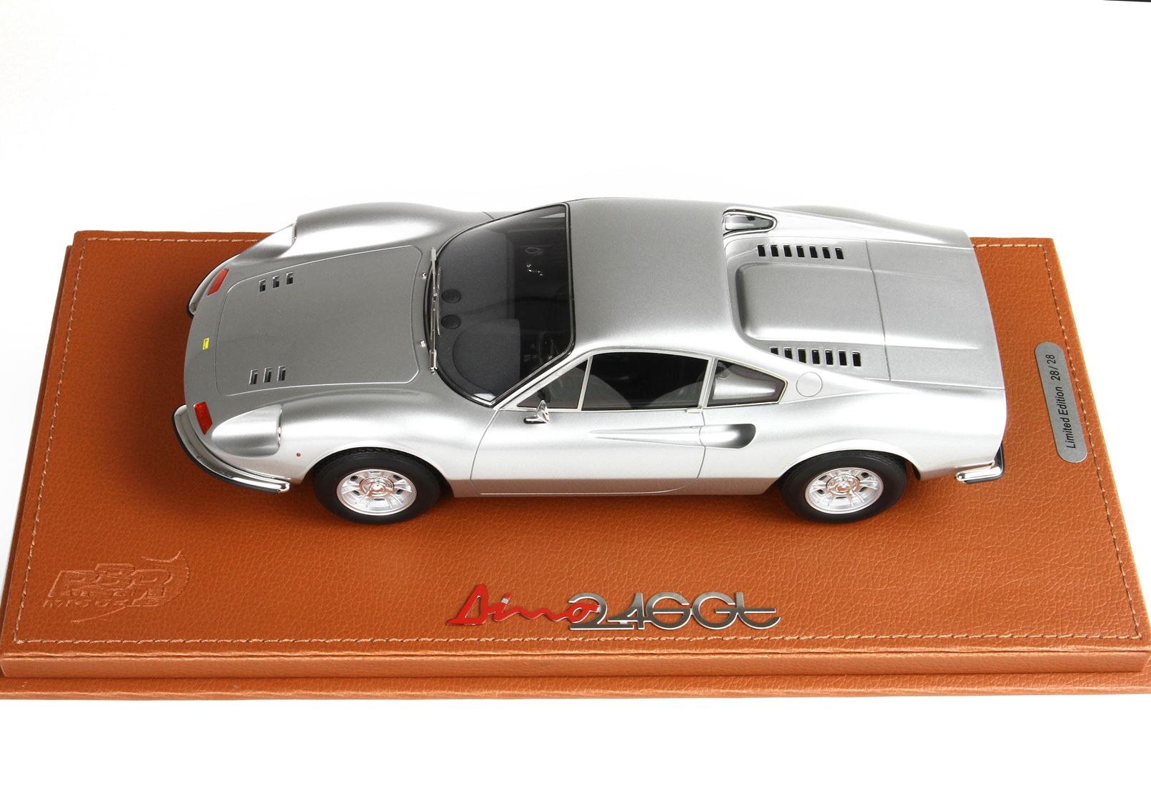 La Dino 246 venne prodotta in diverse versioni il 1969 e il 1973. Venne considerata una sorta di "baby" Ferrari, ma le sue prestazioni e il suo comportamento stradale erano paragonabili a quelli di modelli con motori più frazionati ed il pubblico ne decretò il successo .Vi presentiamo la prima serie denominata TIPO 607L, con le ruote a gallettoni e interni particolari.