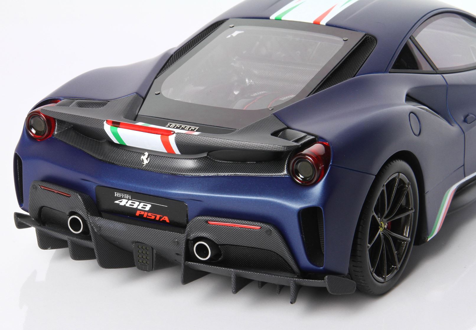 l'ala posteriore è in carbonio a vista. L'allestimento Piloti Ferrari della 488 Pista prevede quattro tinte per la carrozzeria, tutte ispirate al mondo delle competizioni: Rosso Corsa, Blu Tour de France, Nero Daytona e Argento Nürburgring.
