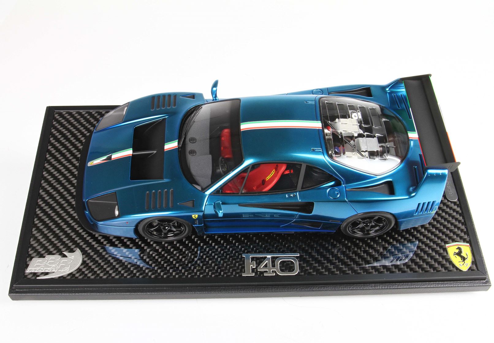 Una stupenda Ferrari F40 LM dal colore BLU cromo, con inserti in nero opaco