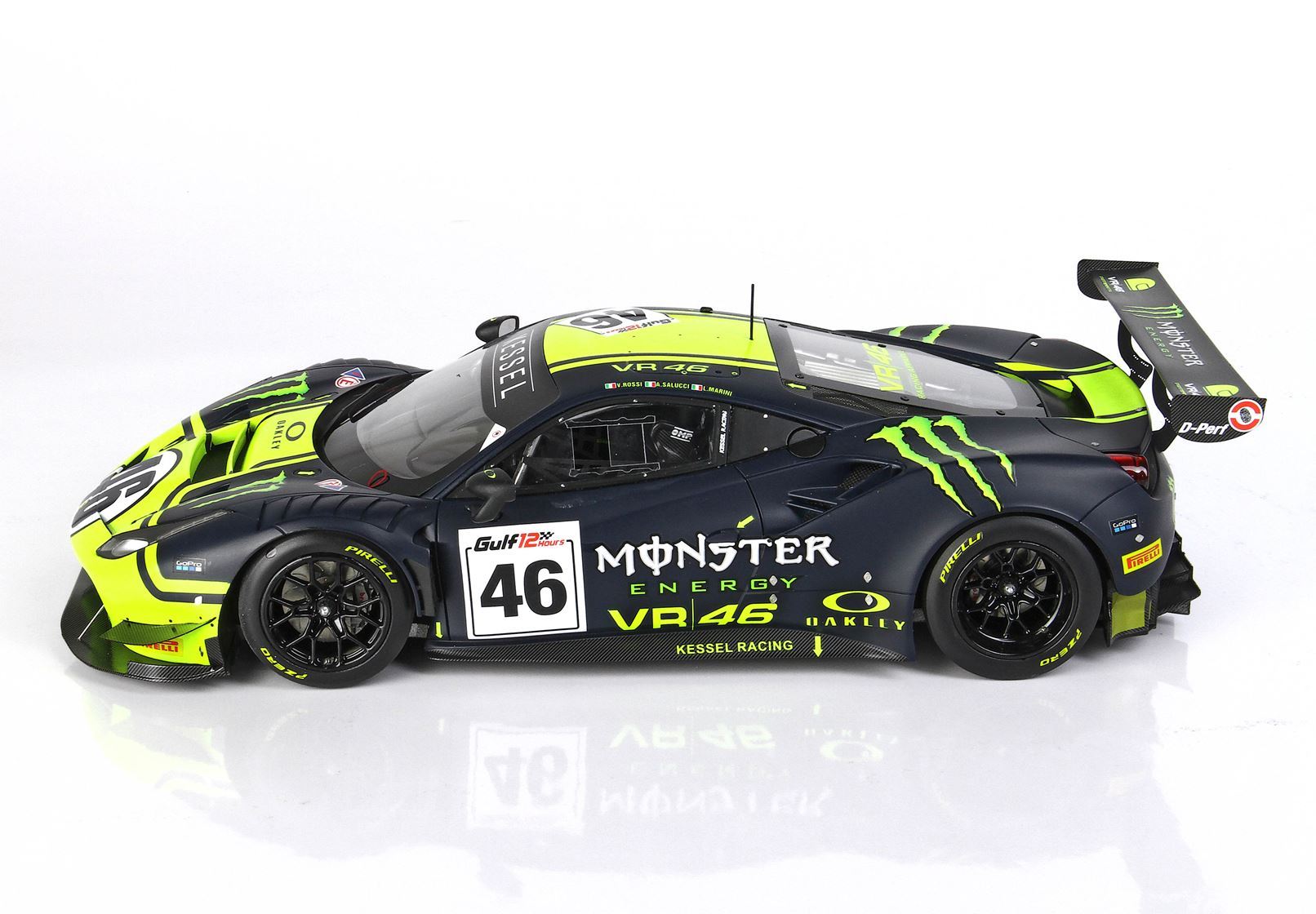 Valentino Rossi, Luca Marini e Uccio alla 12 Ore del Golfo 2021: quarto posto assoluto e terzo di categoria. Hanno rimontato 4 posizioni nelle 12 ore di gara, chiudendo sul gradino più basso del podio nella Categoria ProAm e appena fuori dal podio nella classifica assoluta.