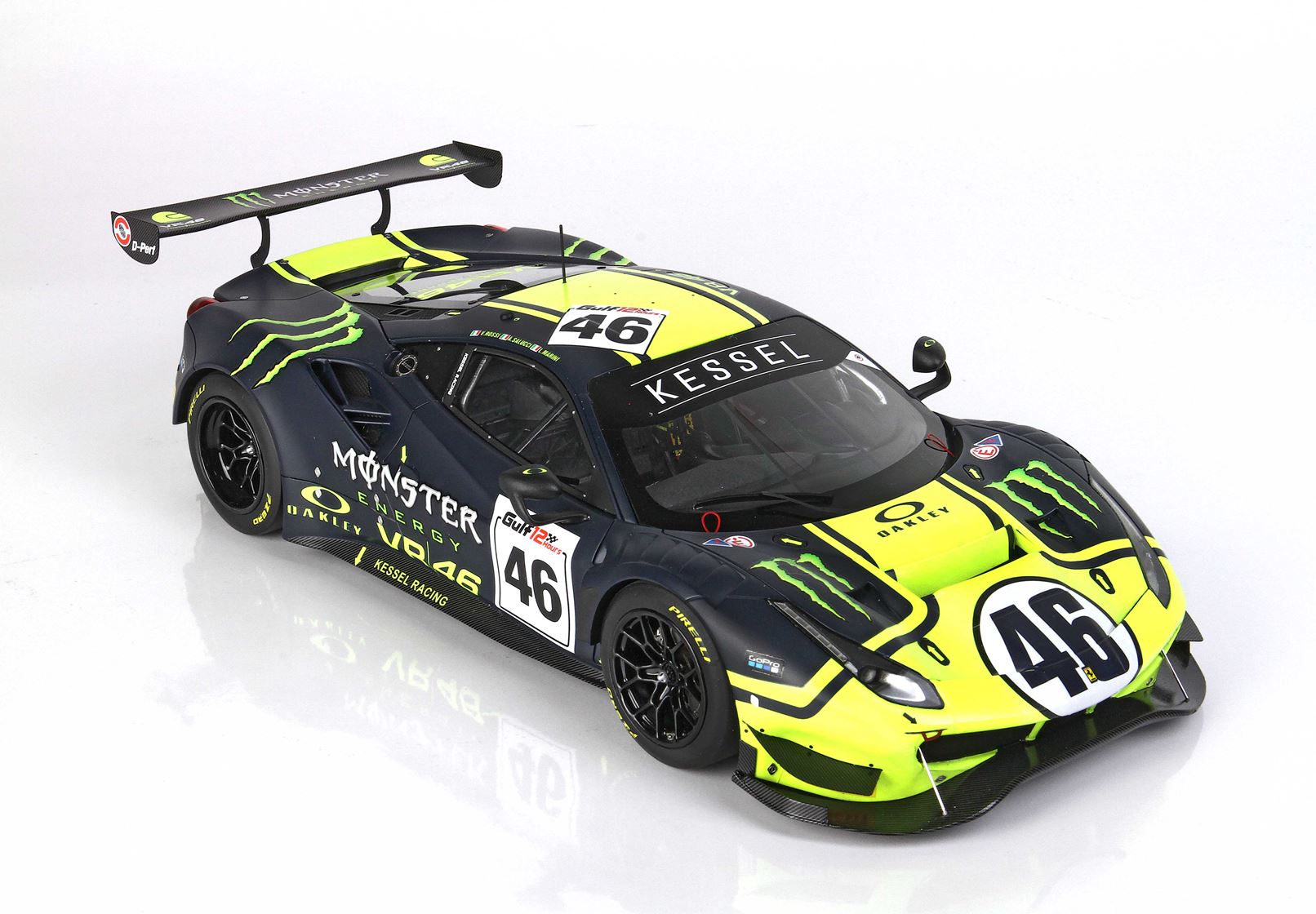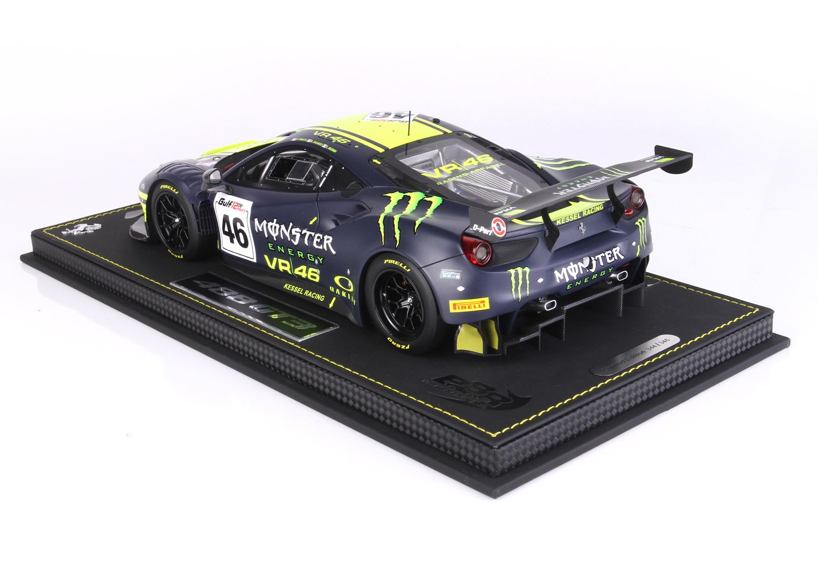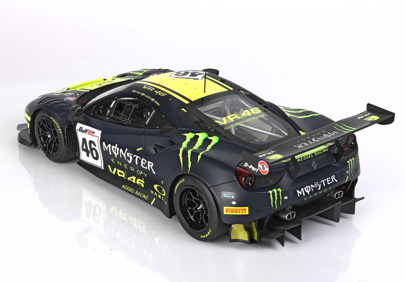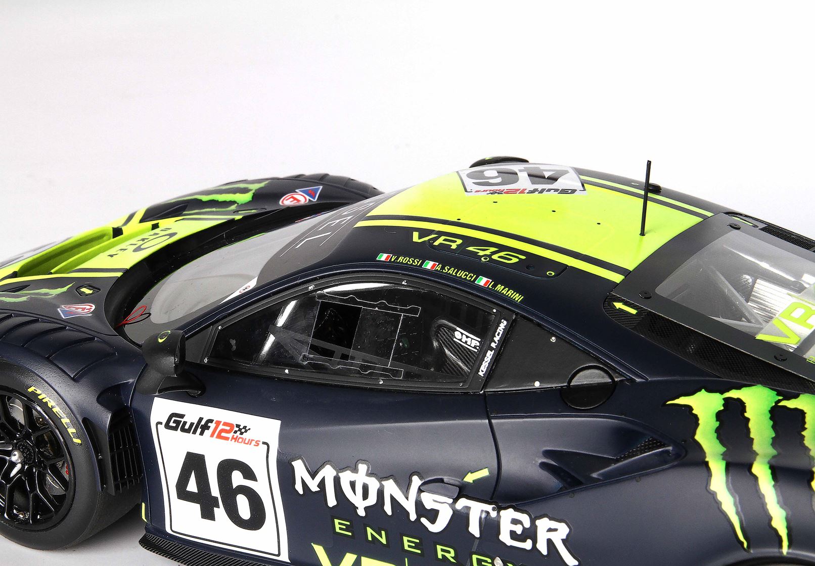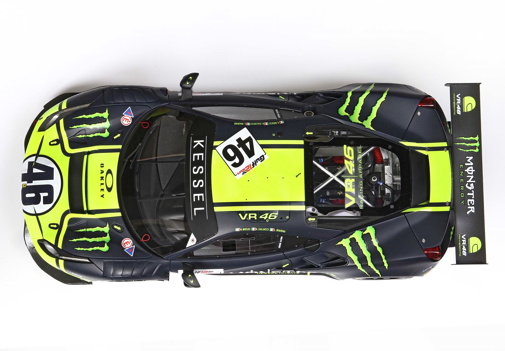 BBR ha fatto tutto lo sviluppo con l’aiuto ufficiale di VR46 e del Team che ha fornito tutti i colori ufficiali, per realizzare uno dei modelli più belli del 2023. La grafica dell’automodello riprende il mitico numero 46 che Valentino Rossi ha portato sul podio più e più volte.
