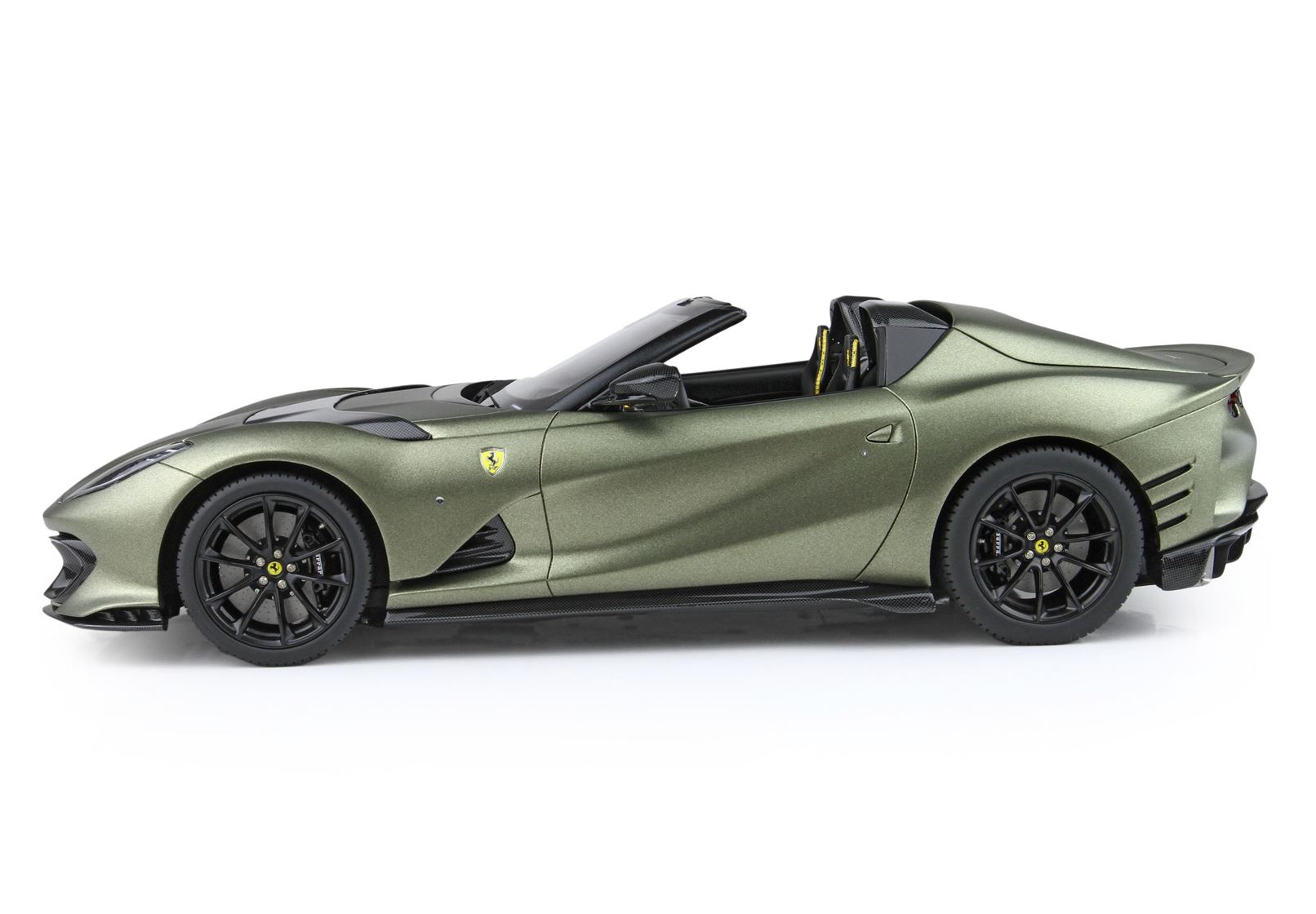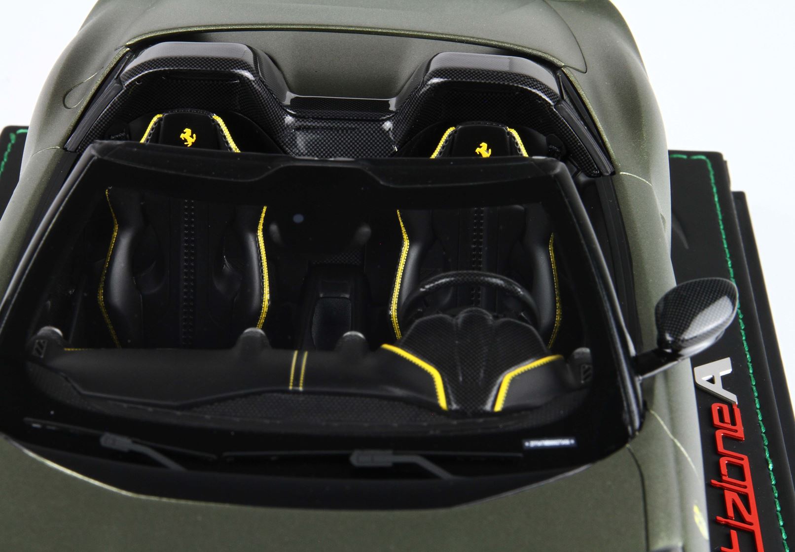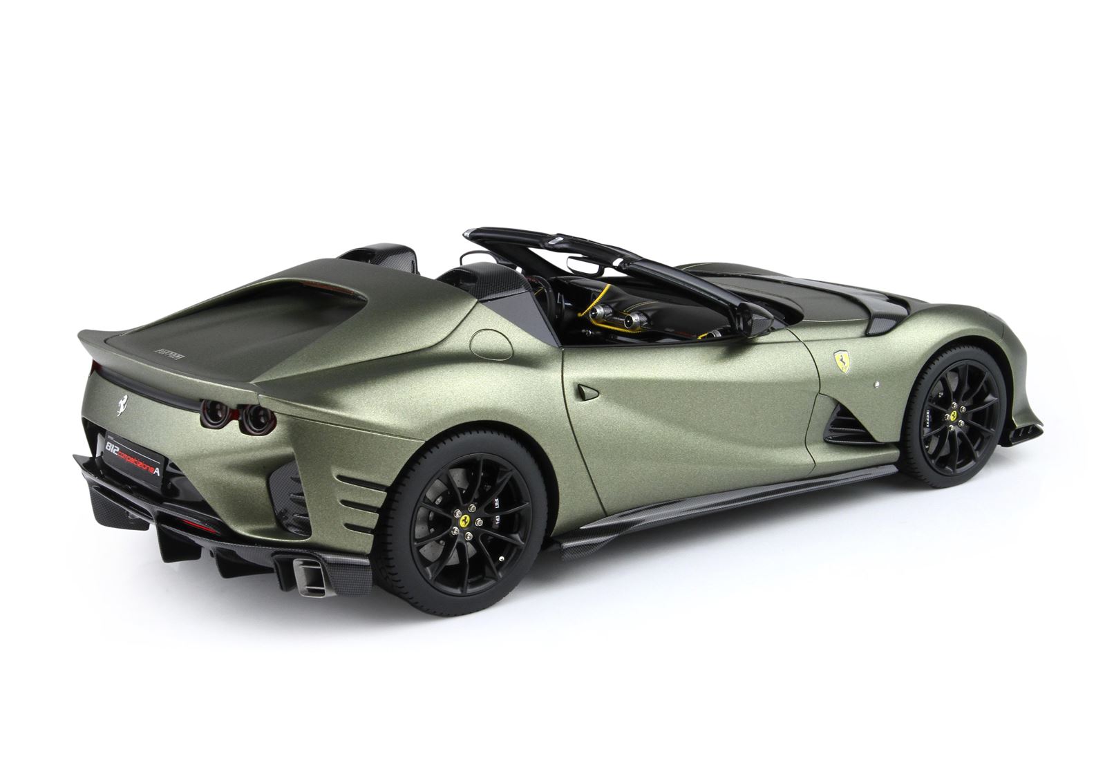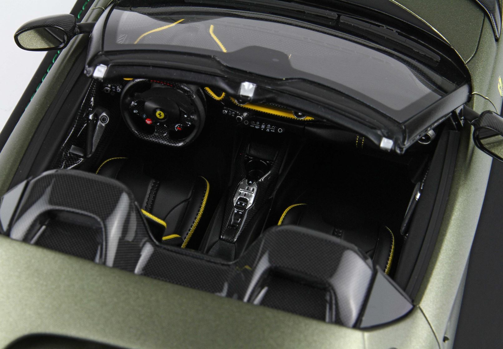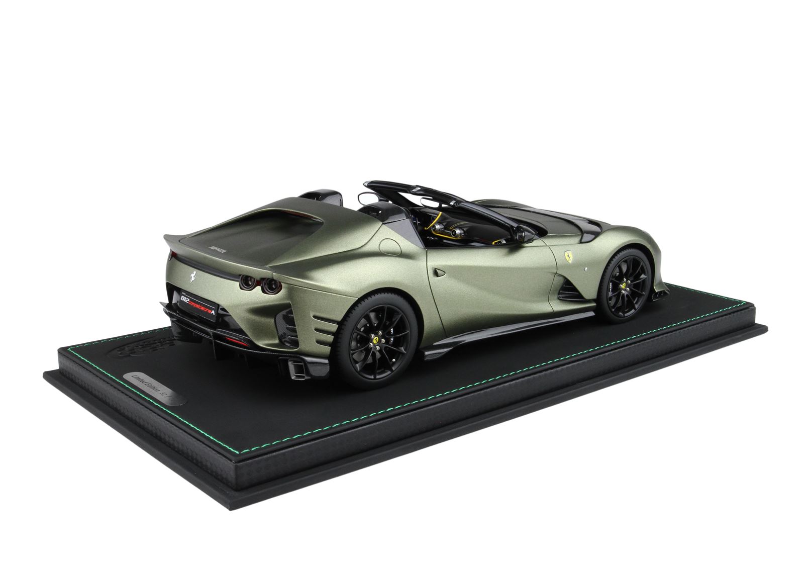 Nuovo colore ufficiale Ferrari Verde Manzoni, qui presentato in versione opaca. Automodello prodotto in versione Spider senza tetto.