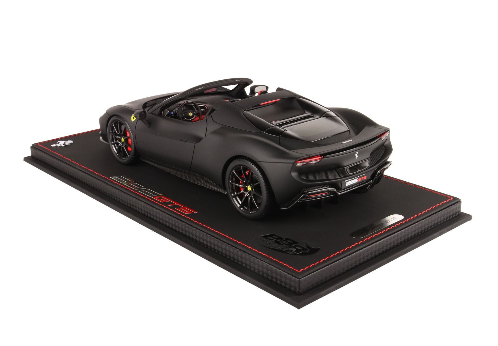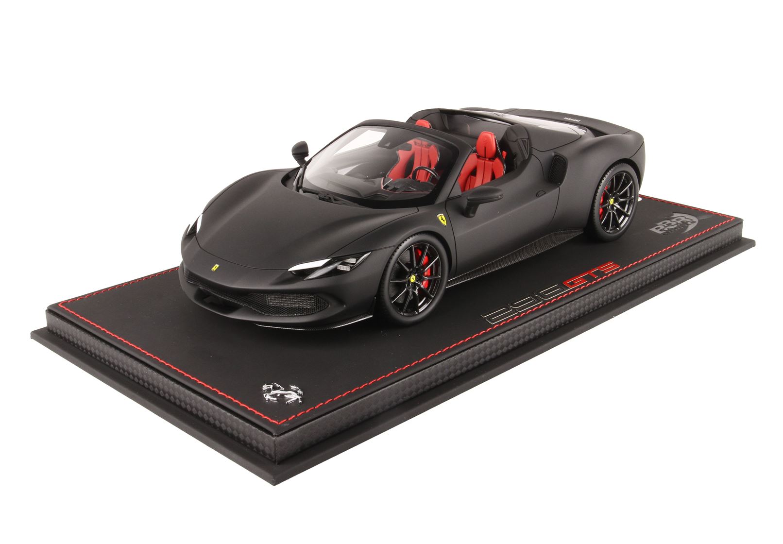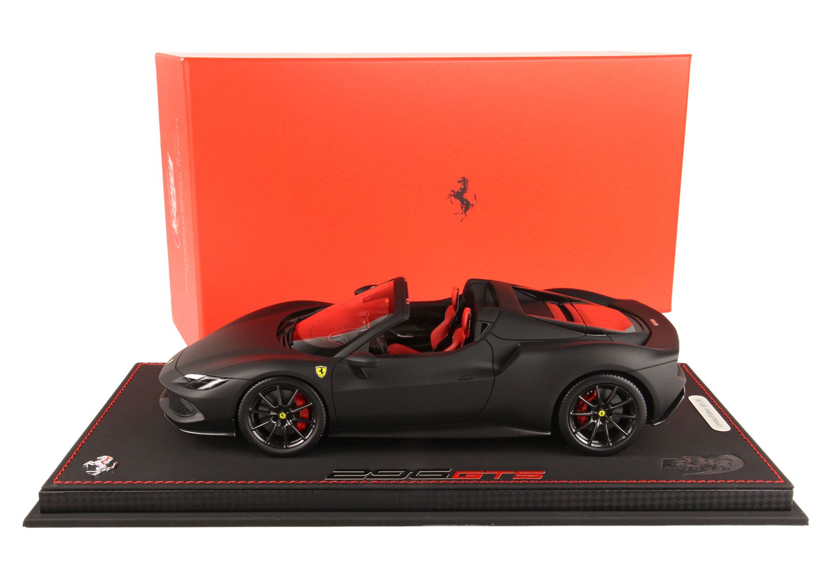 Nero Opaco con sedili sportivi in colore rosso Cartier e ruote in replica fibra di carbonio.