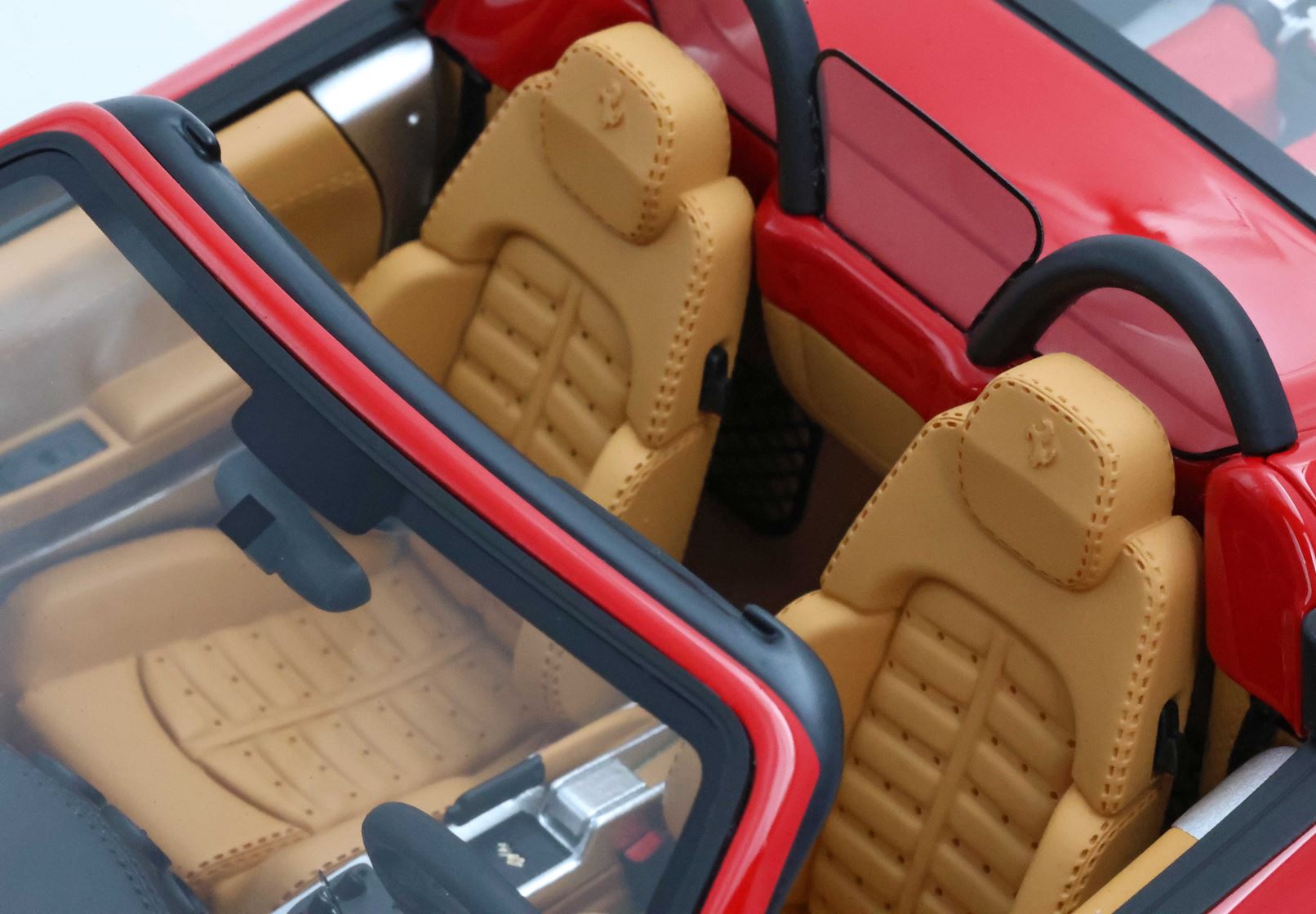 Nonostante la posizione del motore V8 posteriore a vista, i tecnici Ferrari sono riusciti a realizzare una capote automatica a scomparsa totale.