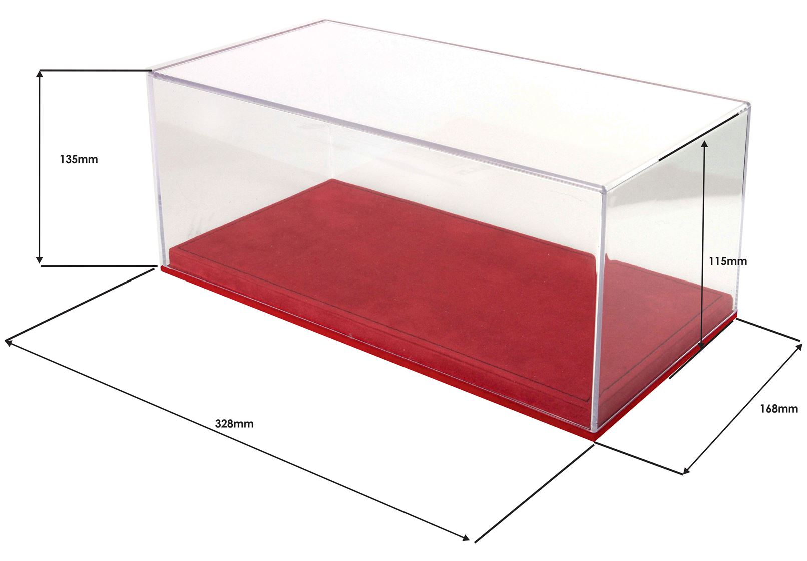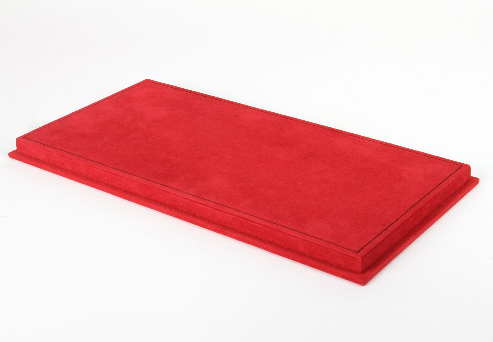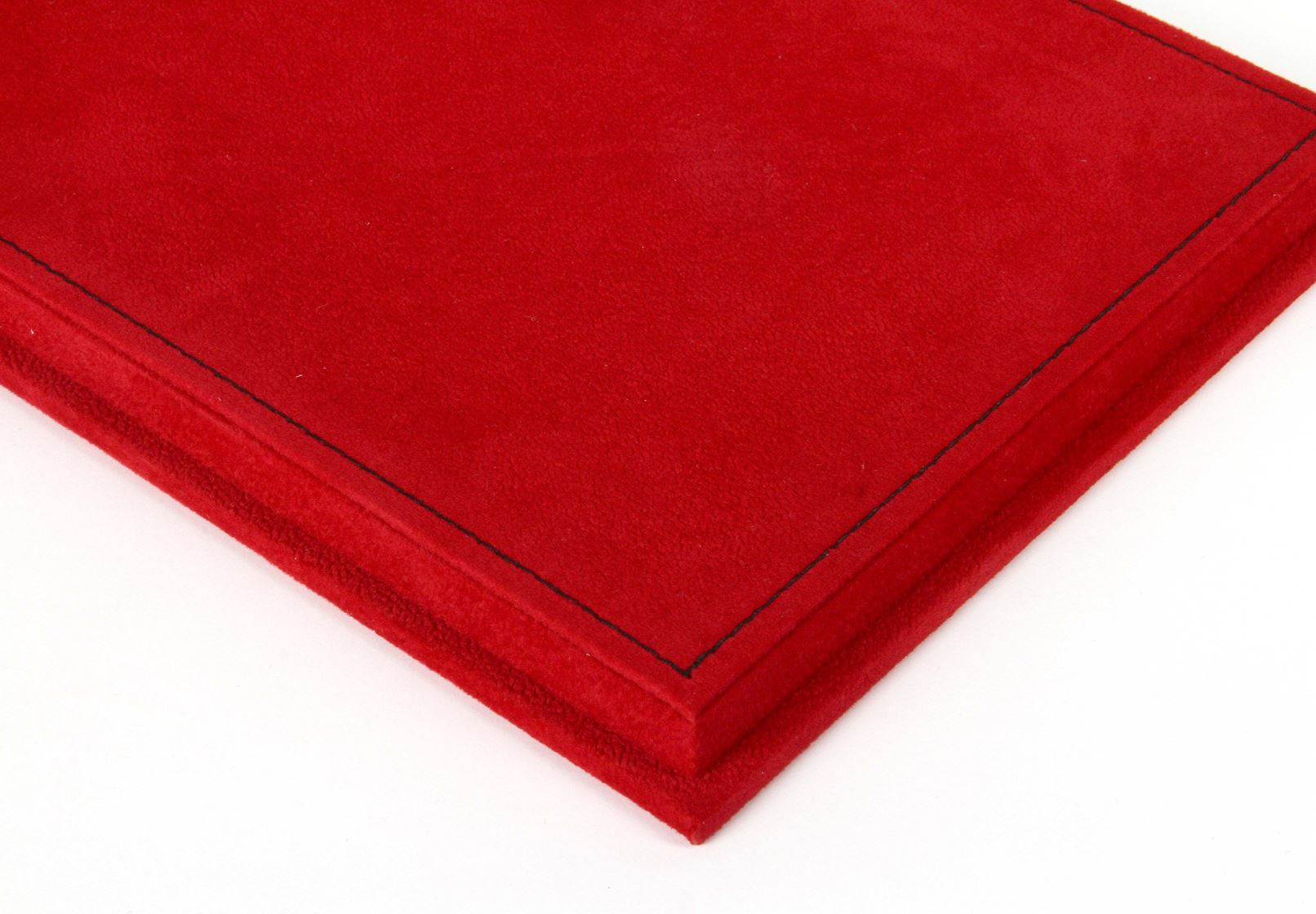 Vetrina con base in alcantara rossa cucitura nera